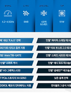 리뷰/PC 일반37 [지구방위대 카비맨] I7-7700K 리뷰 1. CPU소개 (About CPU) i7 6700k와 달라진 점은 클럭이 0.3GHz상승했습니다. 내장그래픽도 한 단계 발전했군요!i7의 가장 큰 장점은 i3,i5와 다르게 하이퍼 스레딩이 지원됩니다! (성능이 두 배!) i7-7700k아키텍처Kaby Lake코드네임Kaby Lake-S제조공정14nm+코어4스레드8기본클럭4,200MHz / 4.2GHz터보클럭4,500MHz / 4.5GHzL2 캐시1,024KBL3 캐시8 MB소켓LGA 1151메모리지원DDR4 듀얼TDP91W내장그래픽HD 630 (오버워치가 가능하다!) 2. CPU개봉(!!!) (CPU unpacking) 그분이 보인다! 햝짝 지금까지 마우스 필드테스트도 못해본 사람의 첫 필드테스트가 무려 i7 CPU!!!감격입니다. 견적 짤 때 i5에.. 2017. 6. 7. 이전 1 2 3 4 5 다음