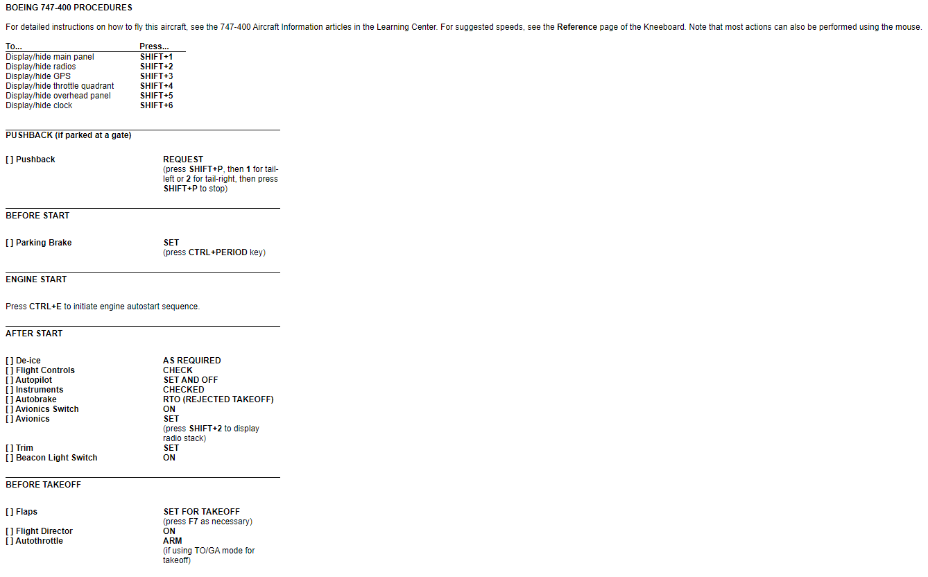 과거 Boeing 747-400의 checklist들을 저장해놓은 html 파일인데, 형식까지 잘 보존되어있네요.