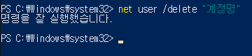 이 명령어는 계정명 이름의 계정을 삭제합니다.
