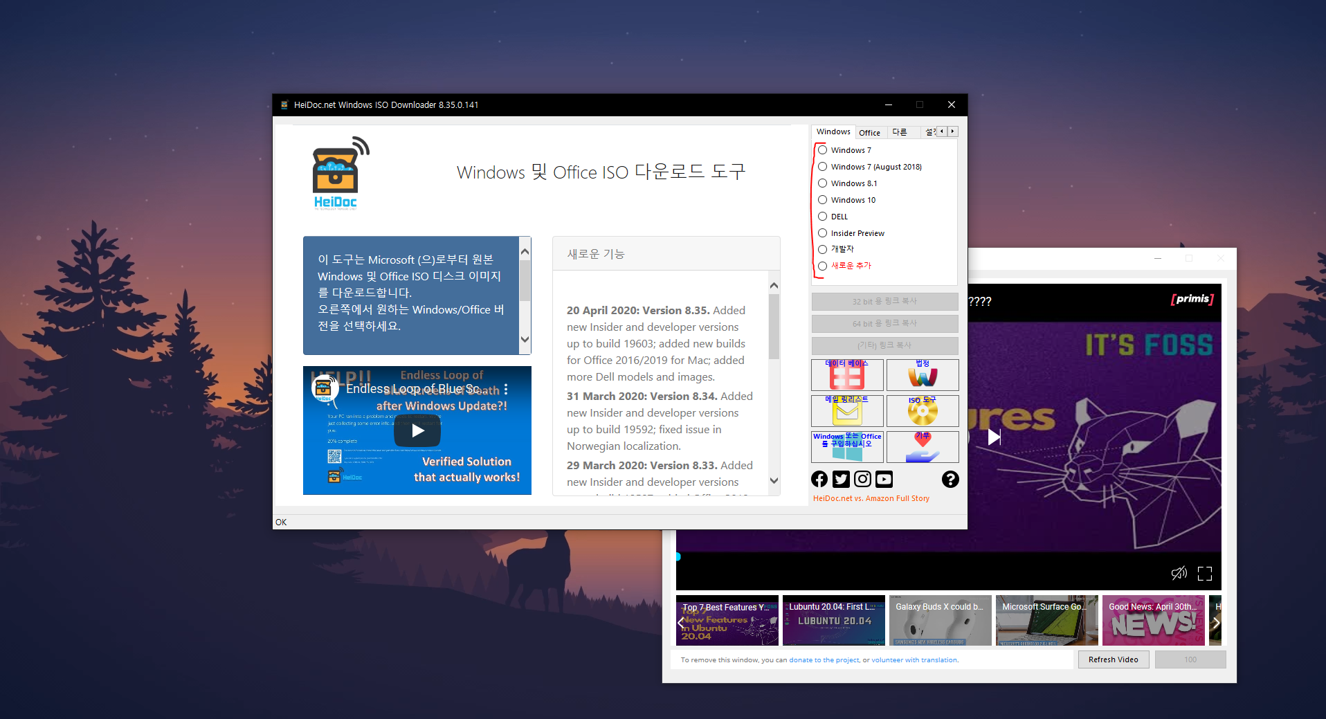 창이 두개가 뜨는데 광고창은 무시하고 현재 눌러진 창에서 Windows 버전을 고릅니다.