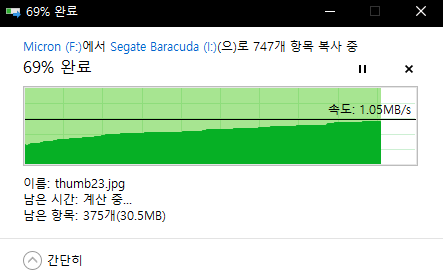 아예 조각난정도로 작은 파일들(500kb 이하)로 200mb 꽉꽉 채워서 옮겨봤는데도 상당히 안정적이고 빠름을 볼 수 있습니다.