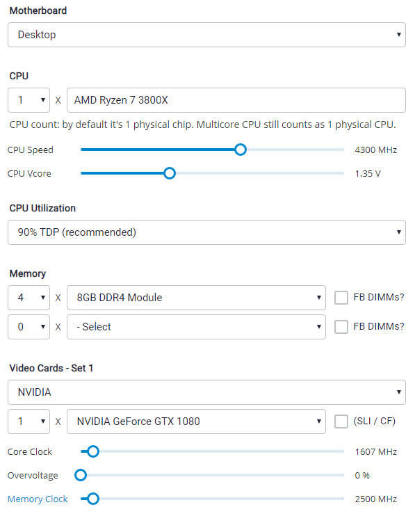AMD Ryzen 7 3800X NVIDIA GeForce GTX 1080 - PSU Calculator - Build 4we8Da