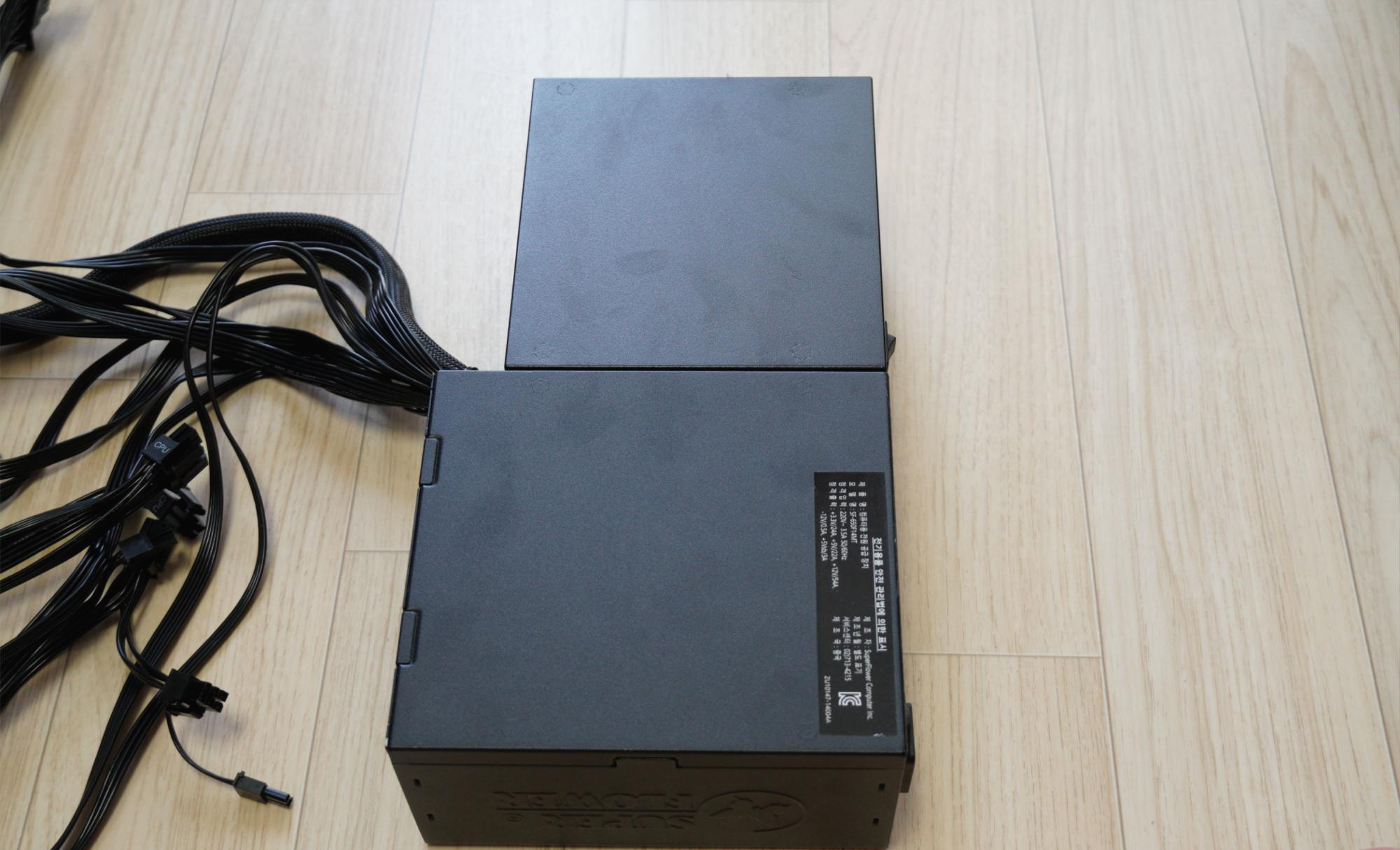 제가 보유한 슈퍼플라워 650w 모듈러 파워와 비교해보았습니다. 길이가 훨씬 더 짧네요.