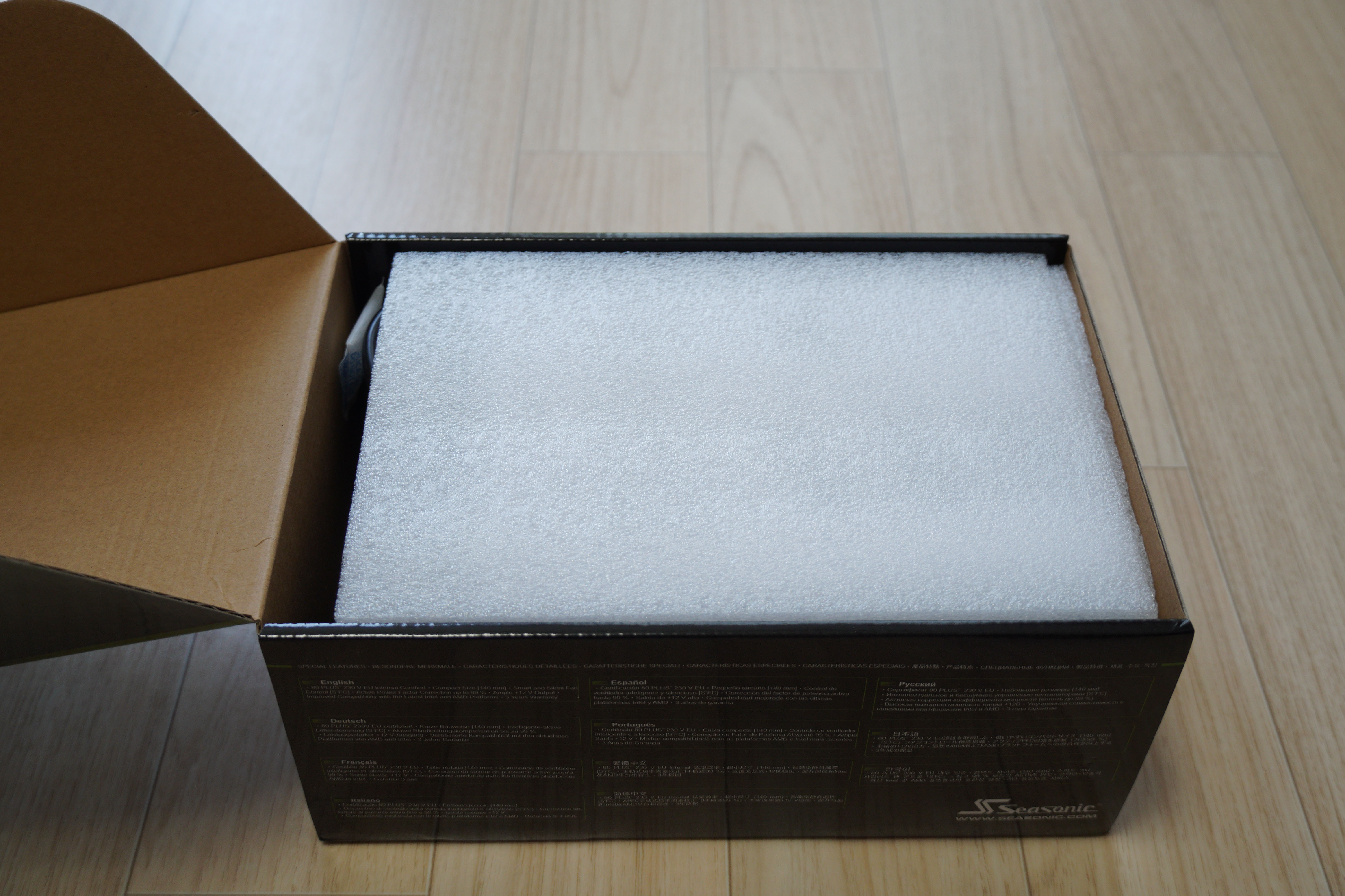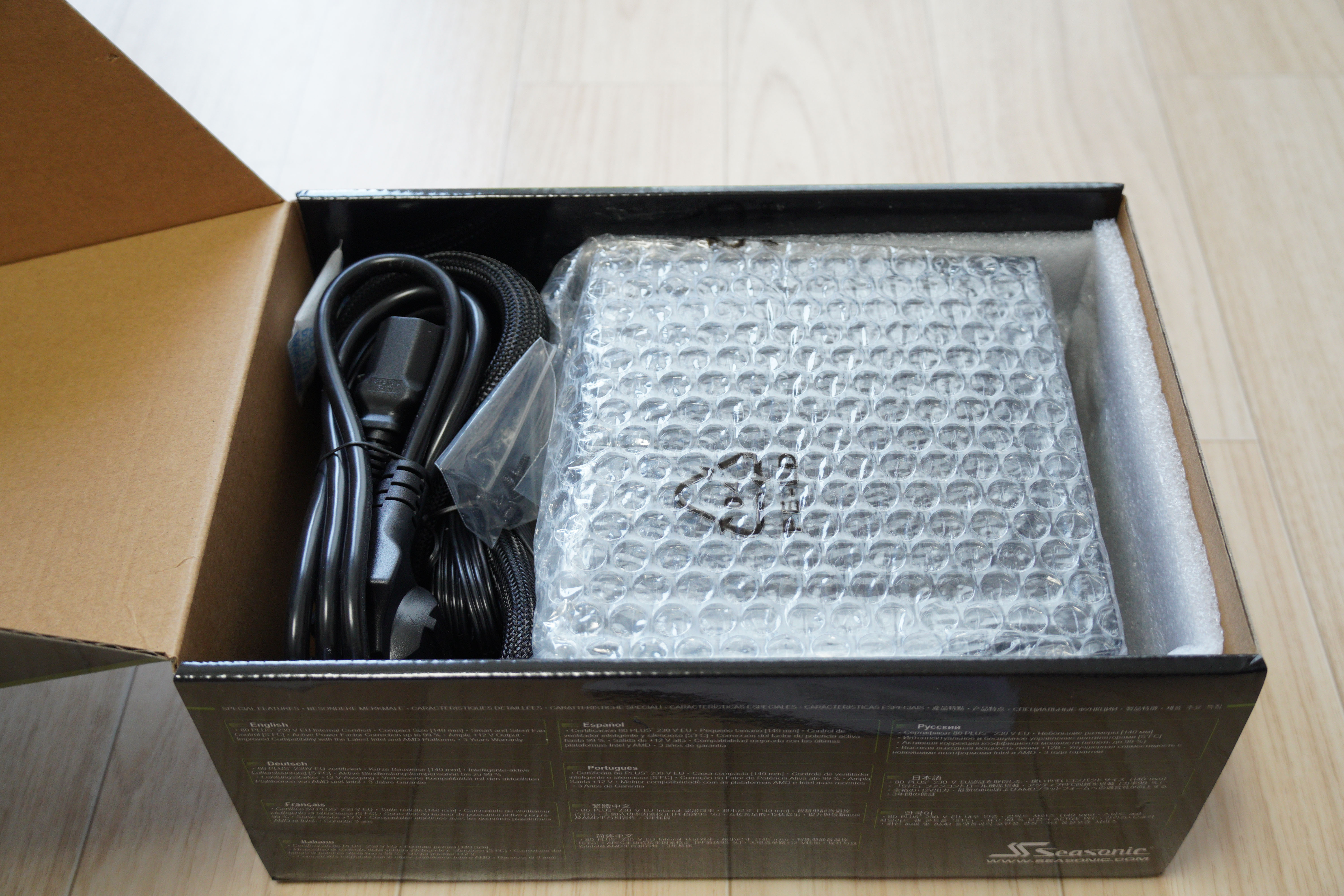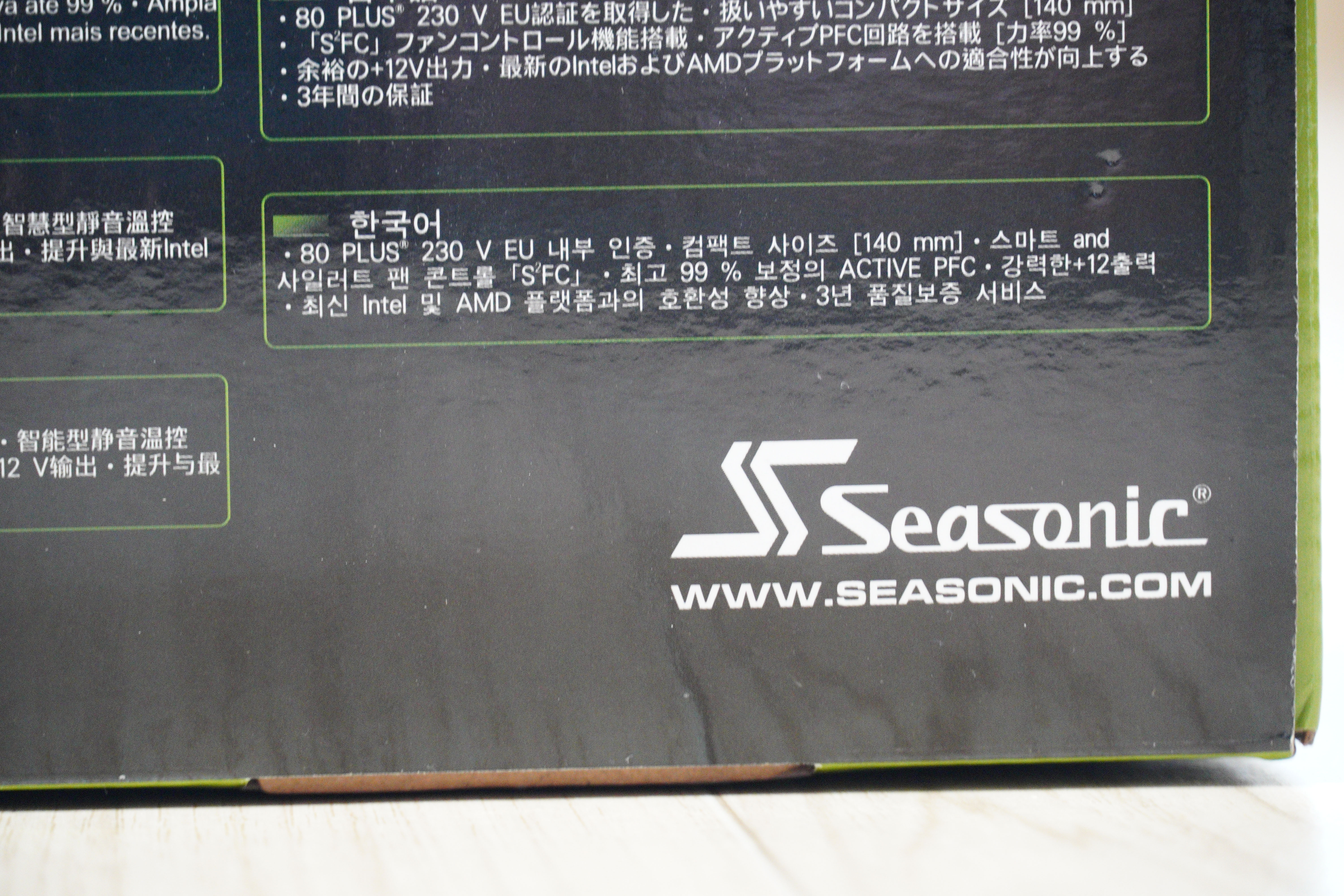 파워서플라이 하단에는 특징이 다양한 언어로 작성되어있습니다.