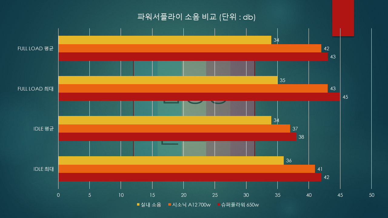 슈퍼플라워는 사용한지 5년이 되가는 파워서플라이라 그런지 소음이 조금 있는 편이였는데 저정도면 다른 소음에 묻혀 들리지도 않는 수준입니다.