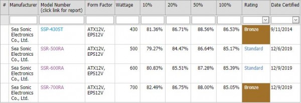 700w 제품군의 경우, 브론즈등급의 효율이 나옵니다.
