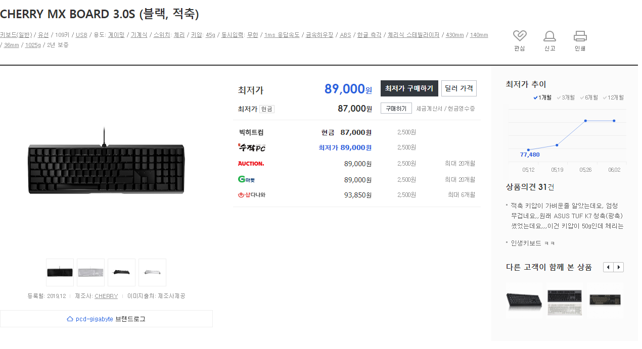 오늘 리뷰할 제품은, 기계식 키보드에 들어가는 대중적인 축을 개발한 체리사의 키보드, 체리 MX Board 3.0S 체리 적축 키보드입니다.