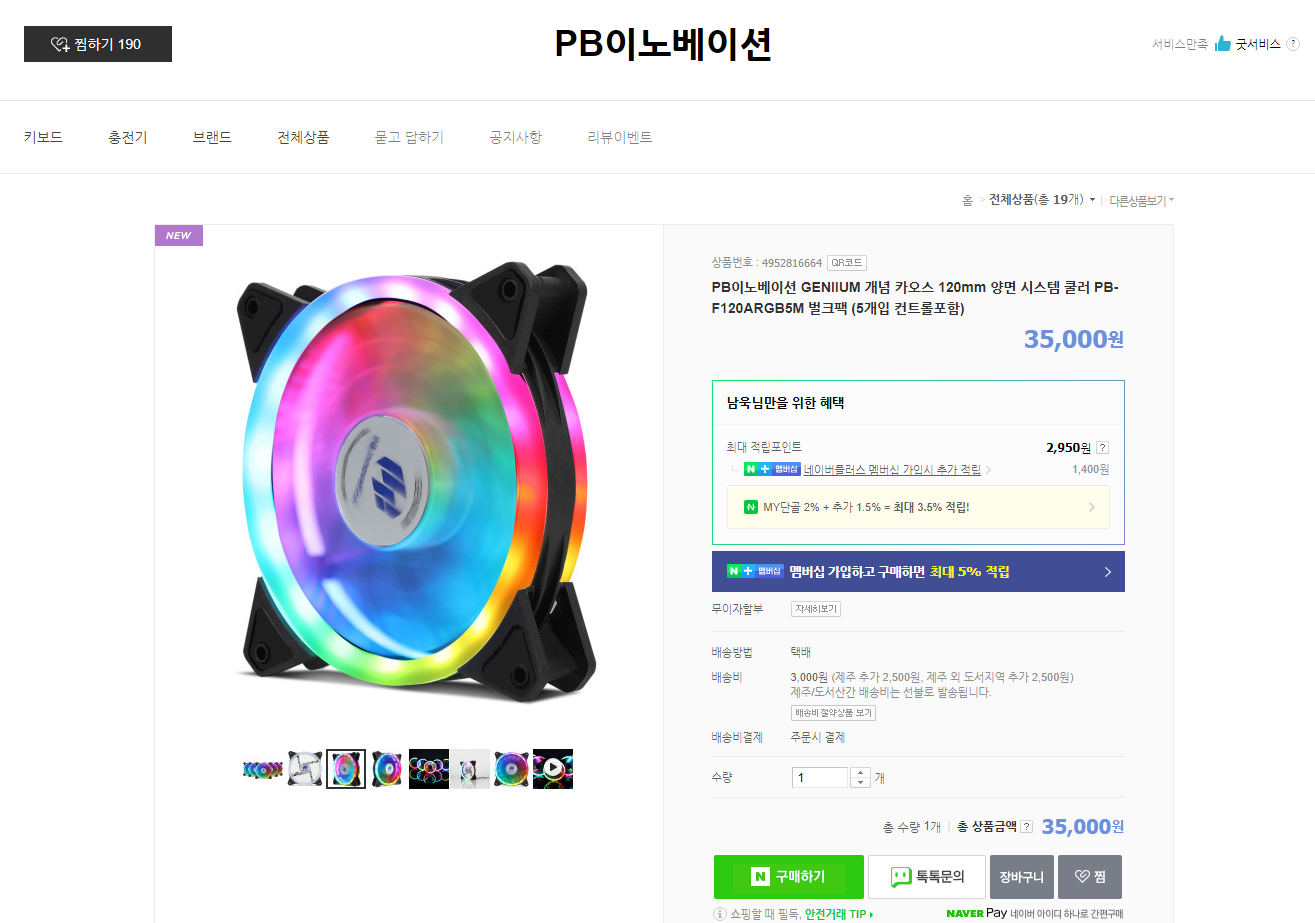 사용할 팬은 PB이노베이션에서 새로 출시한 120mm 듀얼 LED 팬입니다.