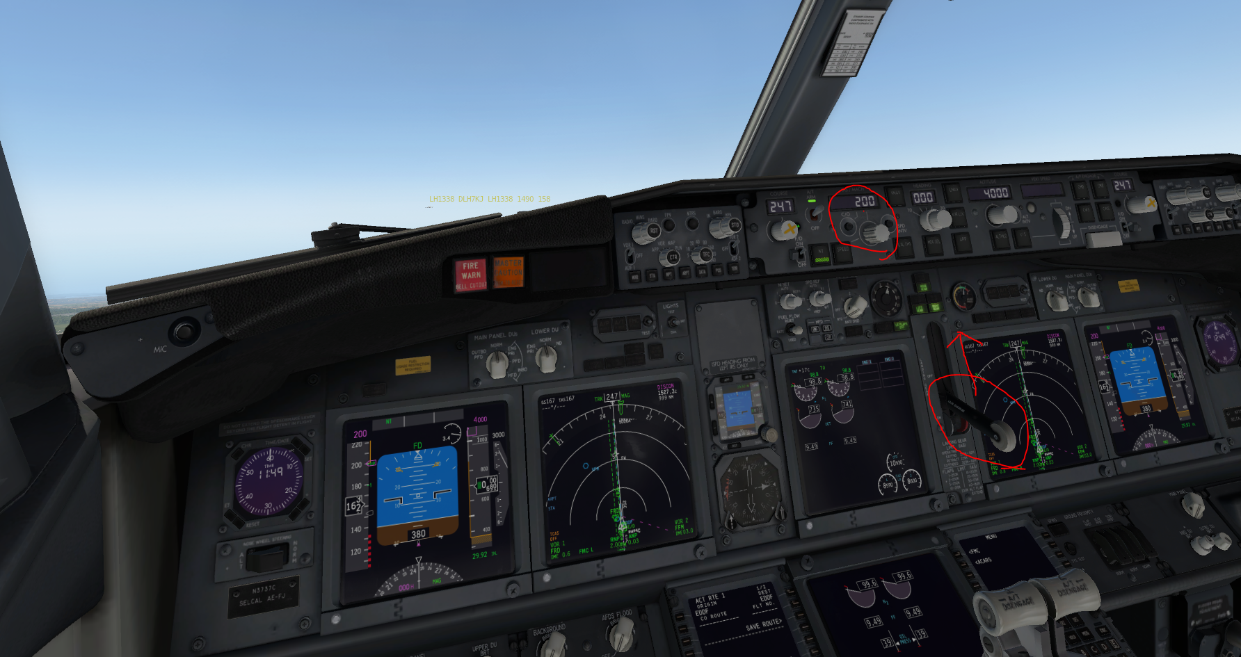 따라서 이륙 후 속도계 조작을 하셔서 200노트 정도까지 올려주세요.(사실 그전에 올려놔도 무방합니다만, 안전 속도를 보기 위해 올렸습니다.)
