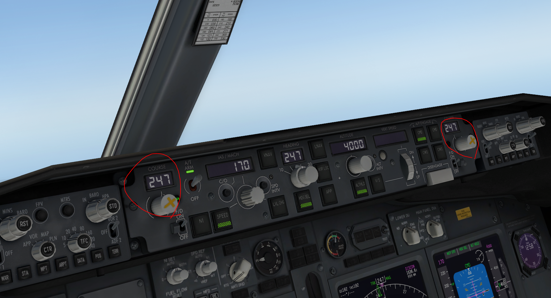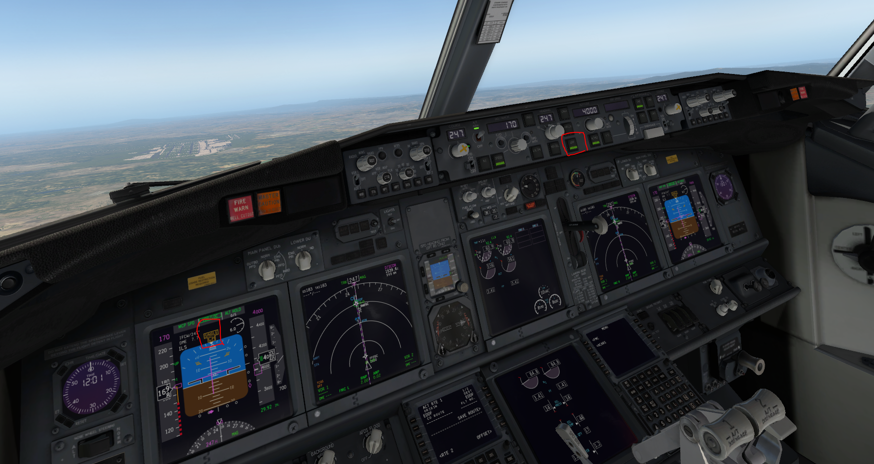 혹은 SPEED 버튼, HDG SEL 버튼, ALTHLD 혹은 V/S 버튼으로 속도, 방향, 고도, 수직 속도를 지정하셔서 비행하셔도 됩니다.