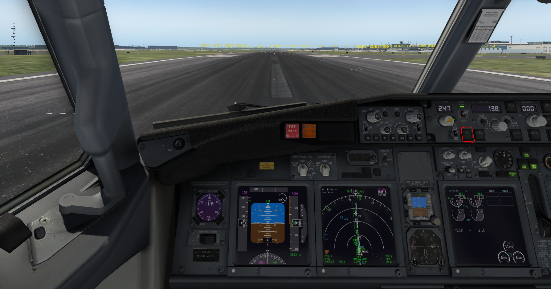 따로 지정하신 TO/GA 버튼이 있으시면 누르시고, 없으시면 N1 버튼을 눌러주세요. 그럼 엔진이 컴퓨터가 설정한 최고 출력으로 이륙한 뒤, 속도계의 V2 속도까지 올라가게 됩니다.