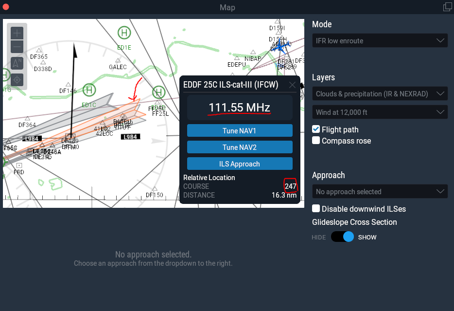 키보드의 M키를 누르면 지도가 나옵니다. 여기에서 Mode 항목을 IFR low enroute로 설정해주세요.