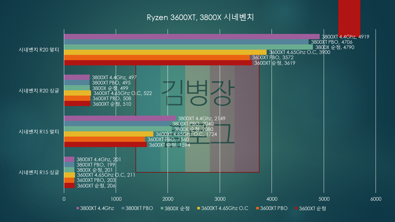 3600XT를 테스트하다 보니, 싱글 처리 능력의 향상이 생각보다 크게 다가왔습니다. 아래에서 테스트한 자료를 가지고 보도록 하겠습니다.