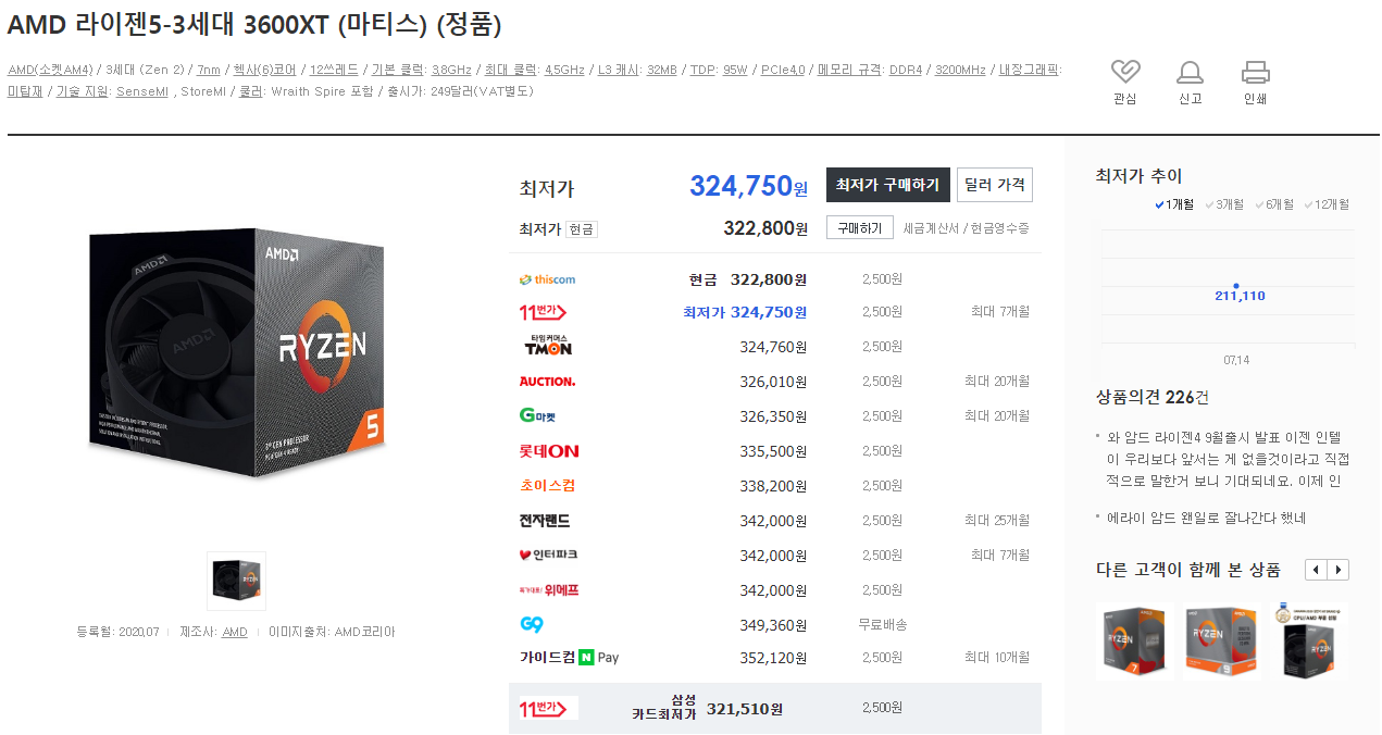 가격안정화가 된다면 3600 = 3600XT 가격이기 때문에 추후 구매하실분들은 3600XT를 보시는것도 좋을 것 같네요.
