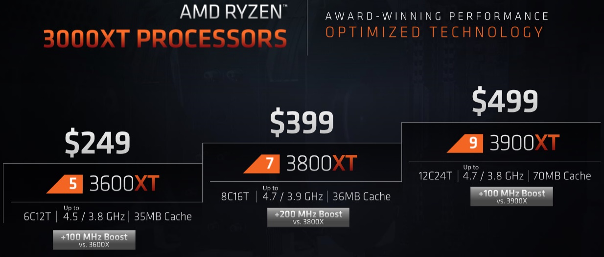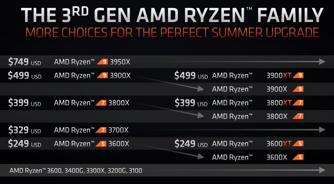 XT 프로세서의 특징은, 기존 7nm 공정이 개선되어 기존 같은 프로세서 대비 4 ~ 5% 더 높은 성능을 가지면서, MRSP 즉 소비자 가격은 동일하게 낸 제품입니다.
