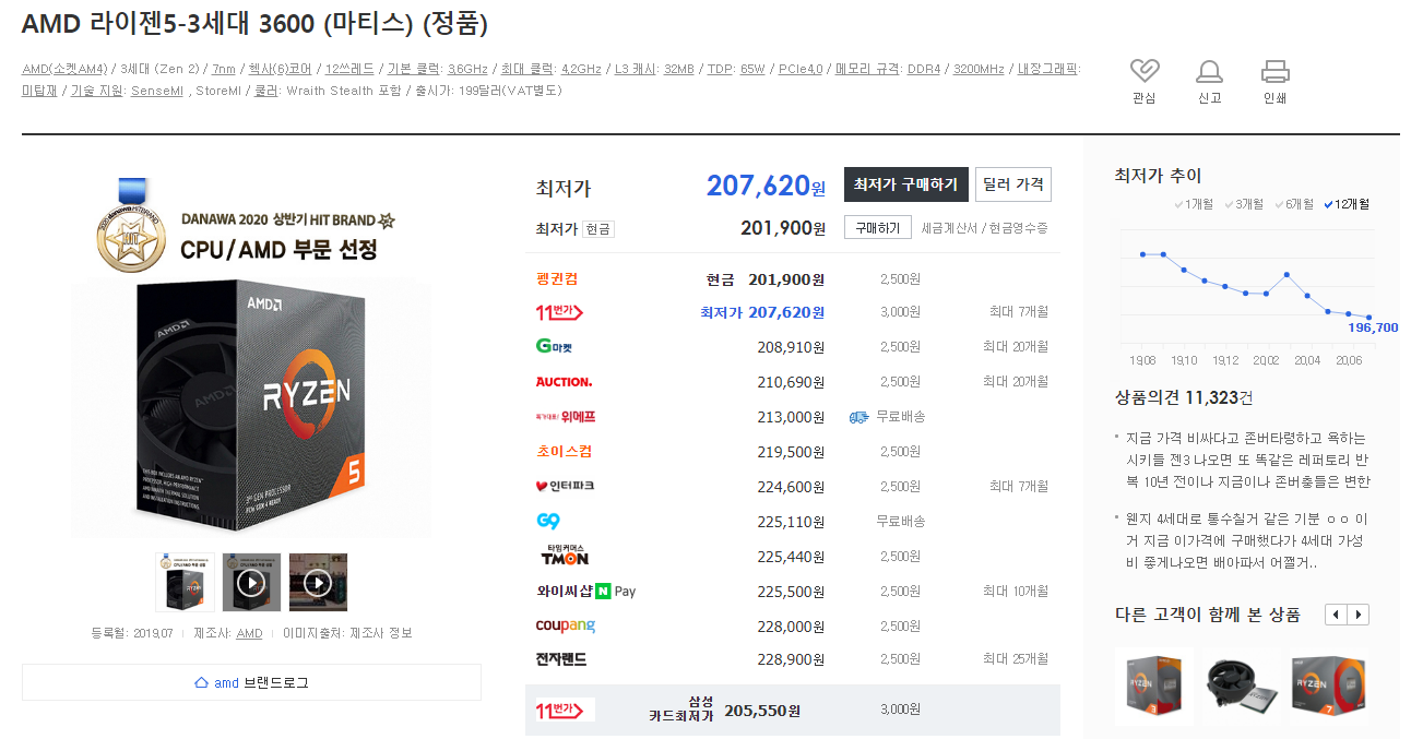 현재 3600의 가격을 보면 재고떨이라도 하는지 가격이 쭉쭉 내려가고있고