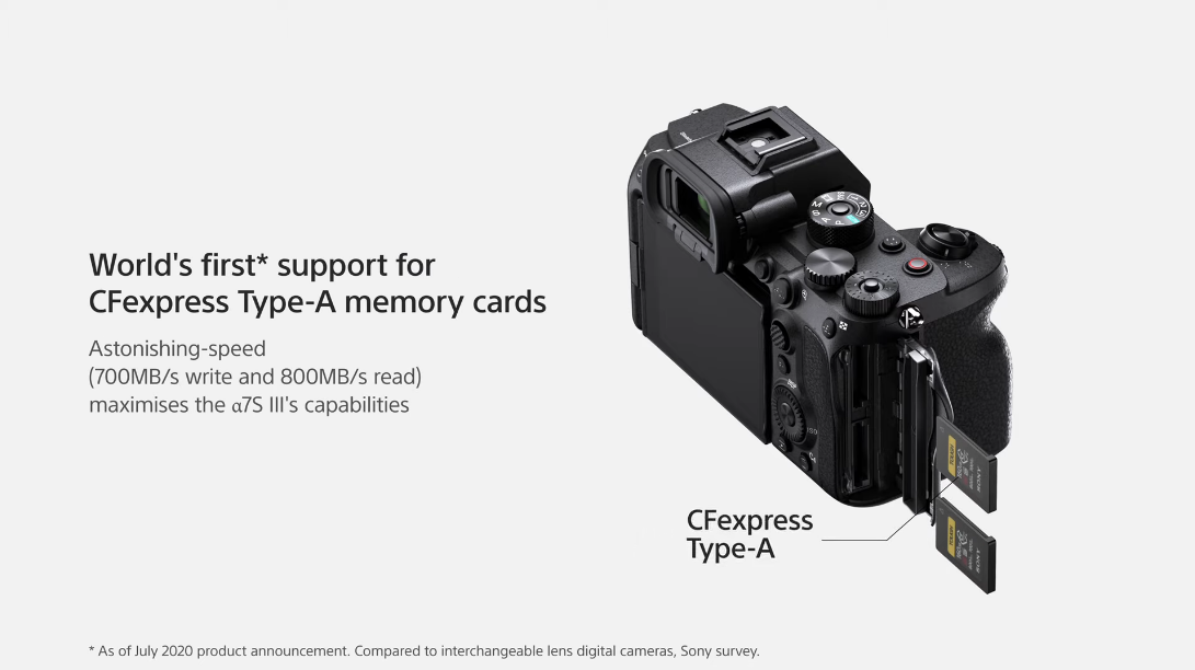 CF Type-A 카드를 이용, RAW 무압축 초당 10연사로 1000장까지 촬영가능.