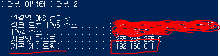 사람마다 다르겠지만, 이더넷이 많이 뜨는 사람도 있을겁니다. 그 중 기본 게이트웨이가 있는걸 찾아 기본 게이트웨이 주소를 인터넷 창을 통해 접속하시면 됩니다.