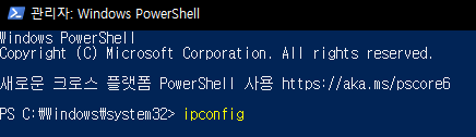 콘솔이 뜨면 ipconfig을 작성 후 엔터