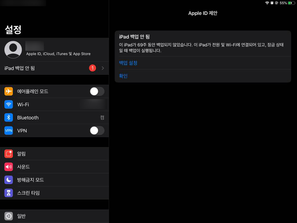 백업을 하래요... 근데 한번씩 보면 백업이 실패하기도 하고, 백업을 하기 싫은데 끄는곳을 못찾을 때가 있습니다.