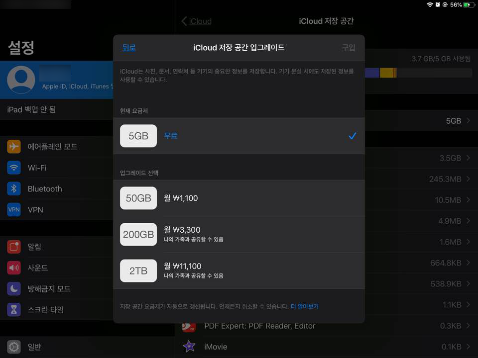 여기서 백업을 끄셔서 원치 않는 푸쉬알림을 끌 수 있습니다. 하지만 백업을 하고싶은데 용량이 없어서 할 수 없으신 분들은