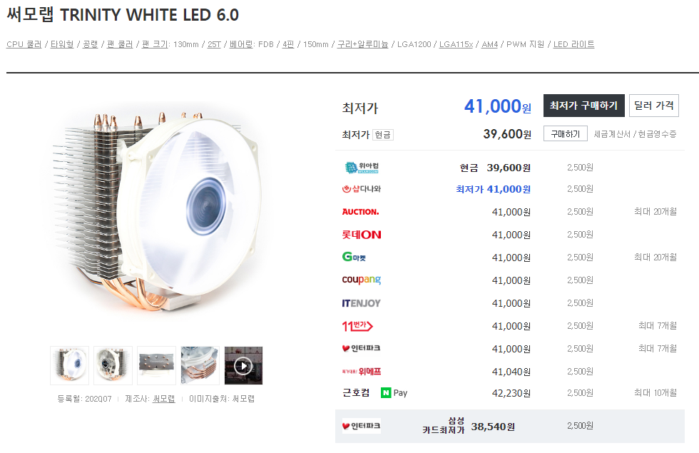 트리니티 화이트 저소음 -> 트리니티 화이트 6.0에서 변경점은 AMD CPU 소켓에 대응하여 일명 무뽑기를 방지하는 장착 방법으로 변경, 고성능 메인보드(CPU 쿨러를 장착하기 힘든 메인보드) 대응 스마트 클립, 일부 구성품 변경입니다.