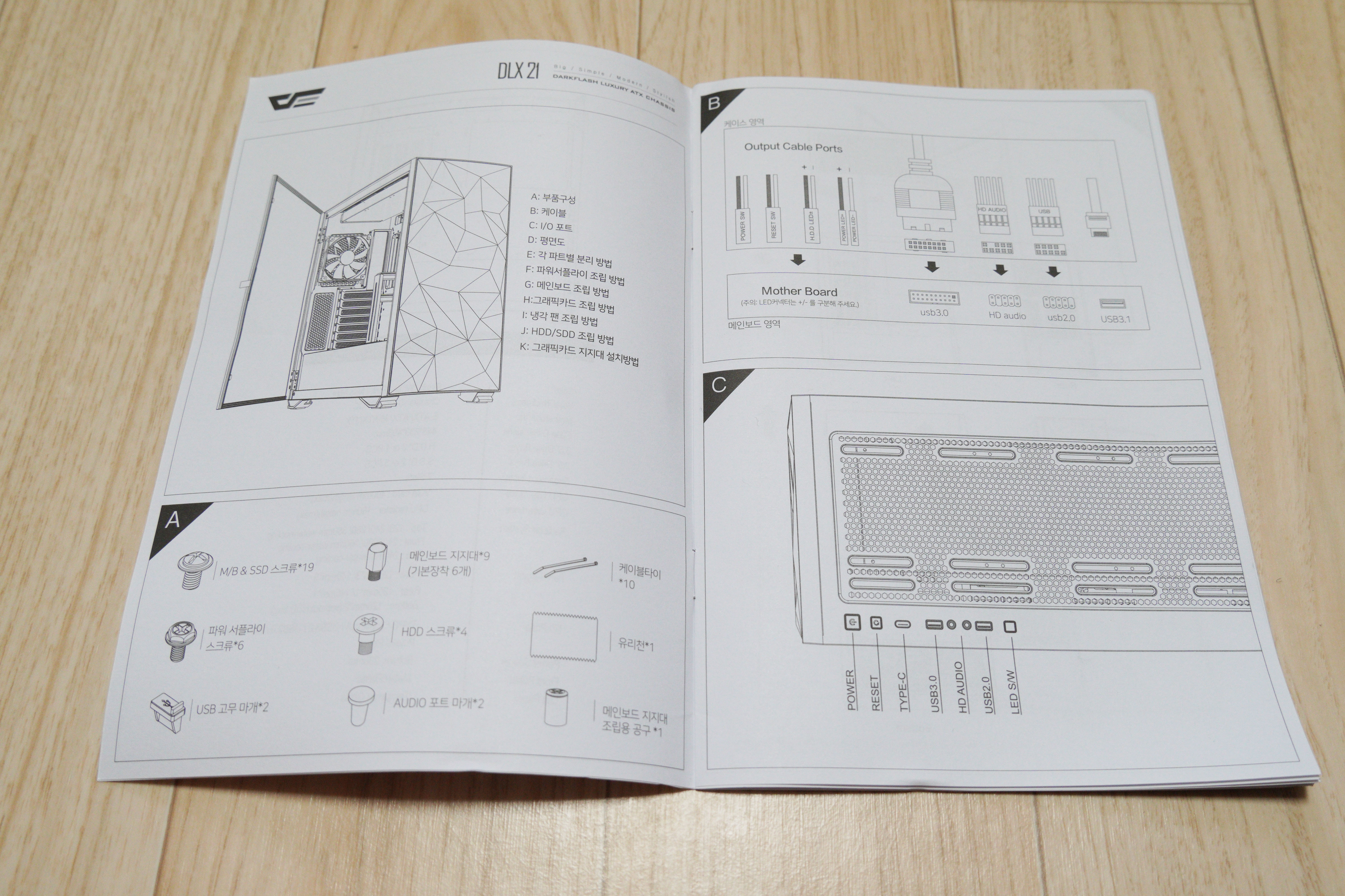 설명서의 경우 구성품과 각종 포트 장착 위치, 장착법들이 상세하게 적혀있습니다. 사용자를 배려한 부분들이 참 마음에 듭니다.