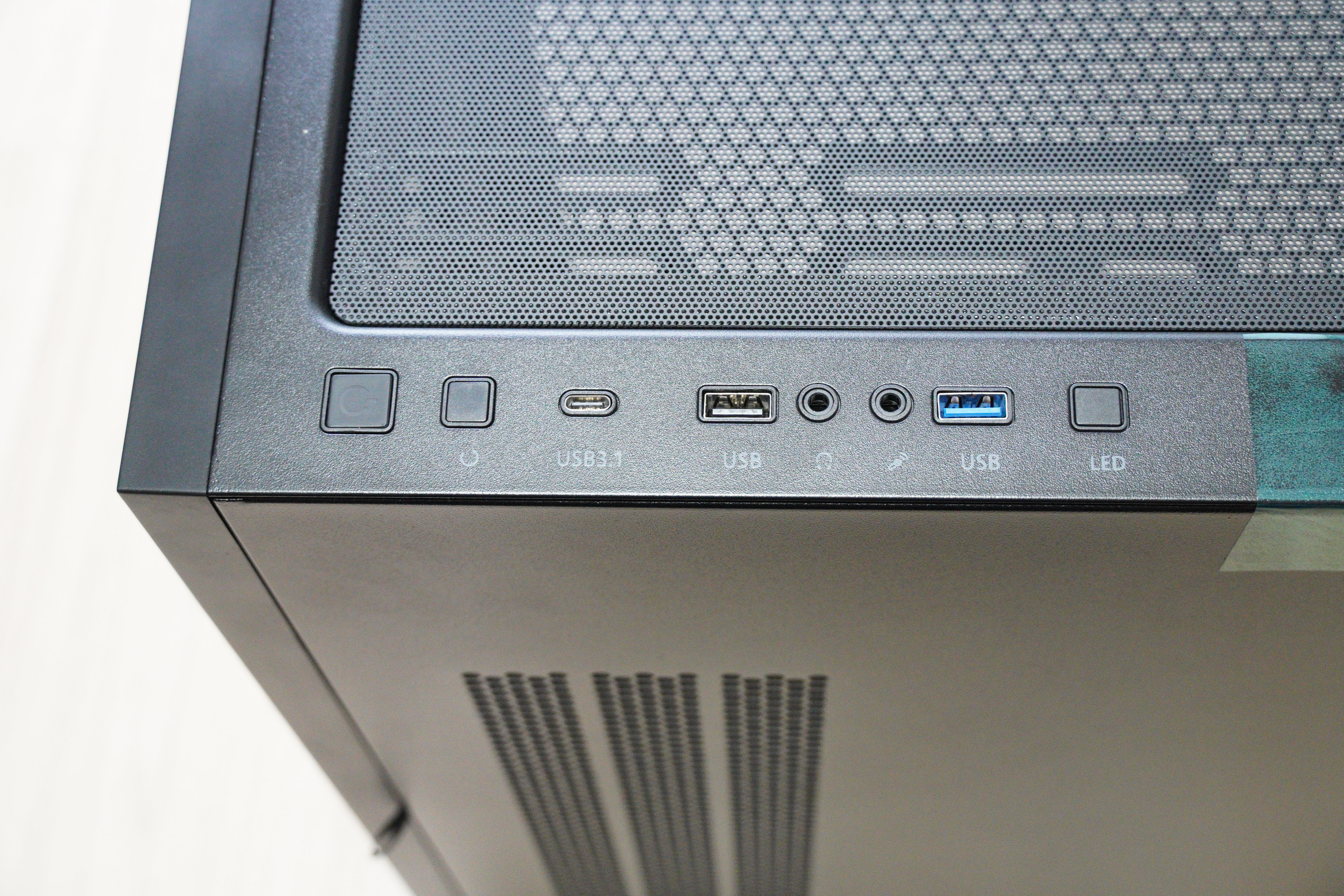 상단 입출력 및 버튼을 보면, 전원 / 리셋버튼, USB 3.1, USB 2.0, Audio / Mic, USB 3.0, LED 버튼이 있습니다.