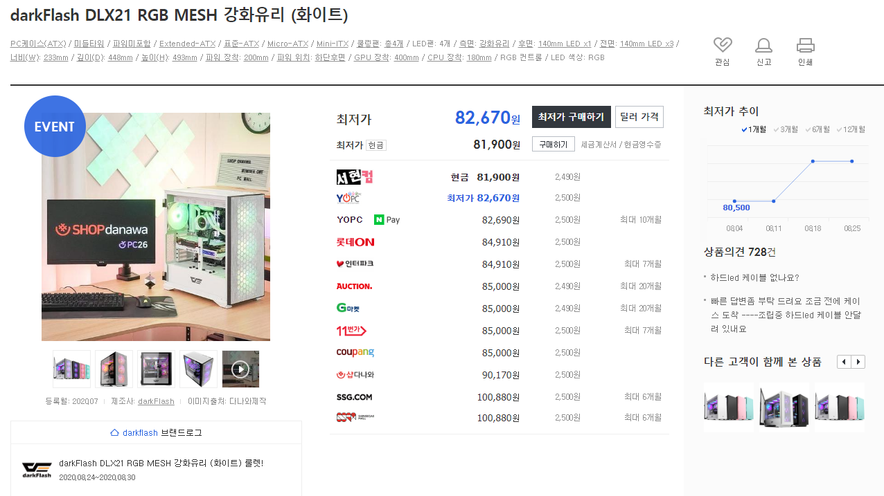 가격대의 경우 정가는 8.5만원정도로 구성되어 있습니다. 살짝 비싸다고 생각될 수 있는 가격대지만, 가격대에 걸맞는 훌륭한 마감, 기본 동봉팬의 퀄리티, 사용자 편의성 등을 보면 합리적인 가격이라 생각됩니다.