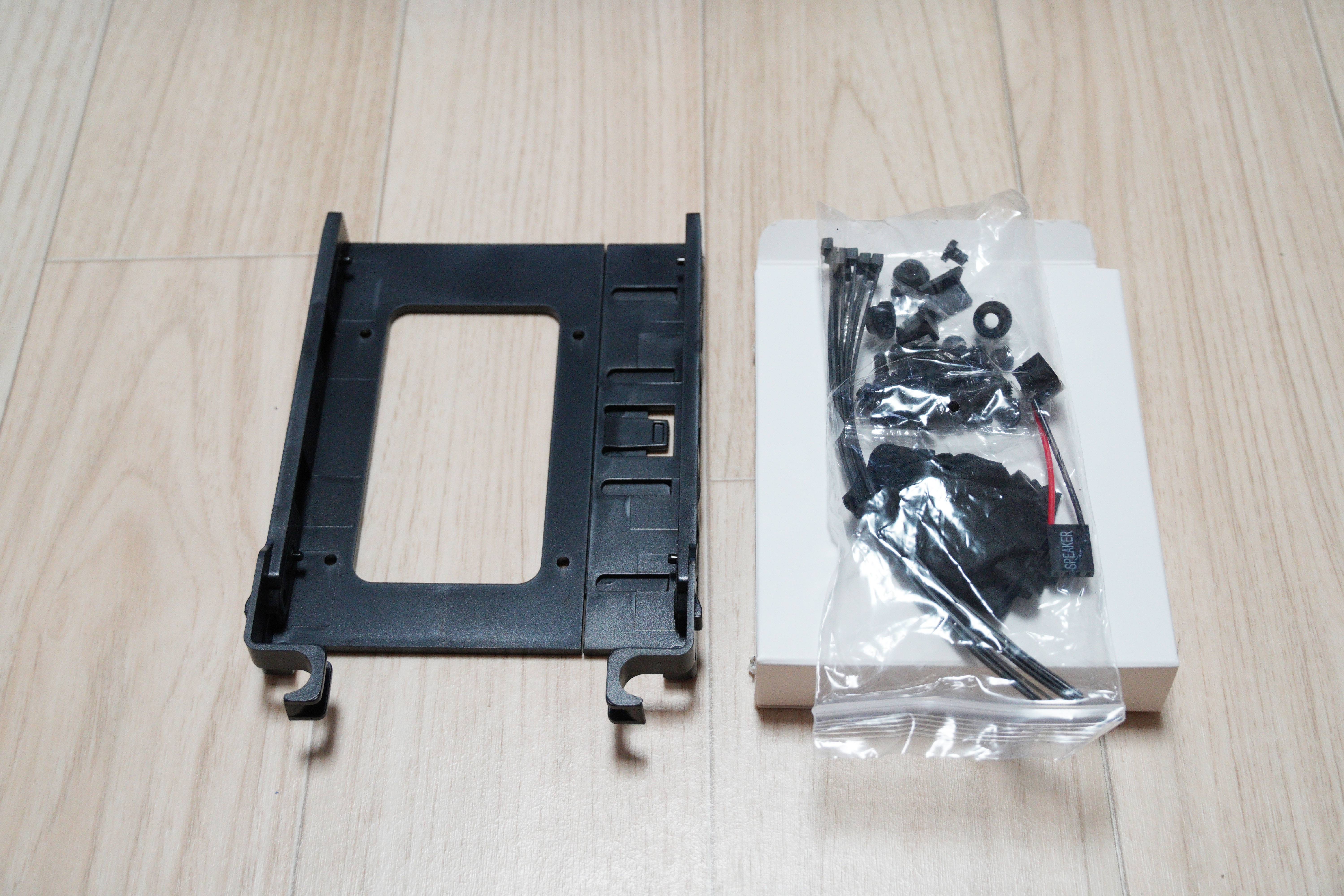 하단에는 HDD 장착을 위한 전용 브라켓이 있으며, 케이스 부속품도 함께 들어있습니다.