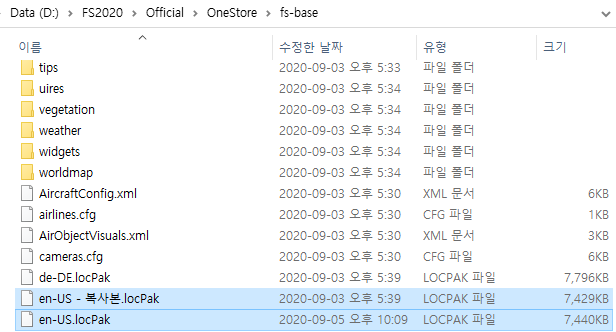 각자 설치 경로를 찾으셨다면, 위의 링크에서 파일을 받으시고, FS2020 설치 경로에 들어가셔서 Official\OneStore\fs-base 폴더로 가야합니다.