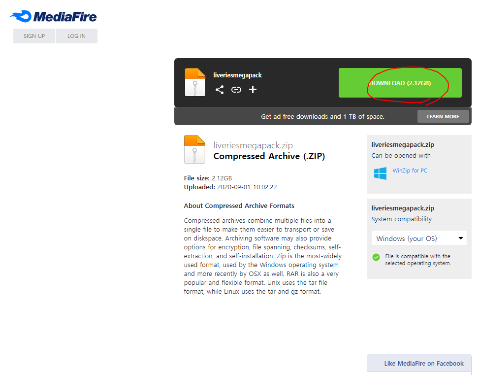 미디어파이어 링크로 들어가집니다. 초록색 다운로드 버튼을 누르세요.