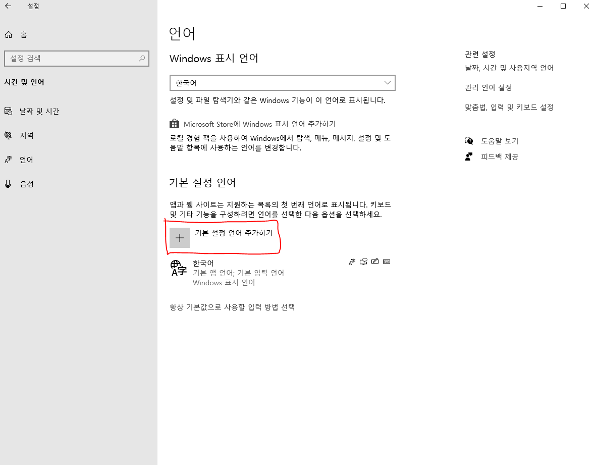 영문 윈도우를 사용중인 경우, 한국어 언어팩이 필요합니다.