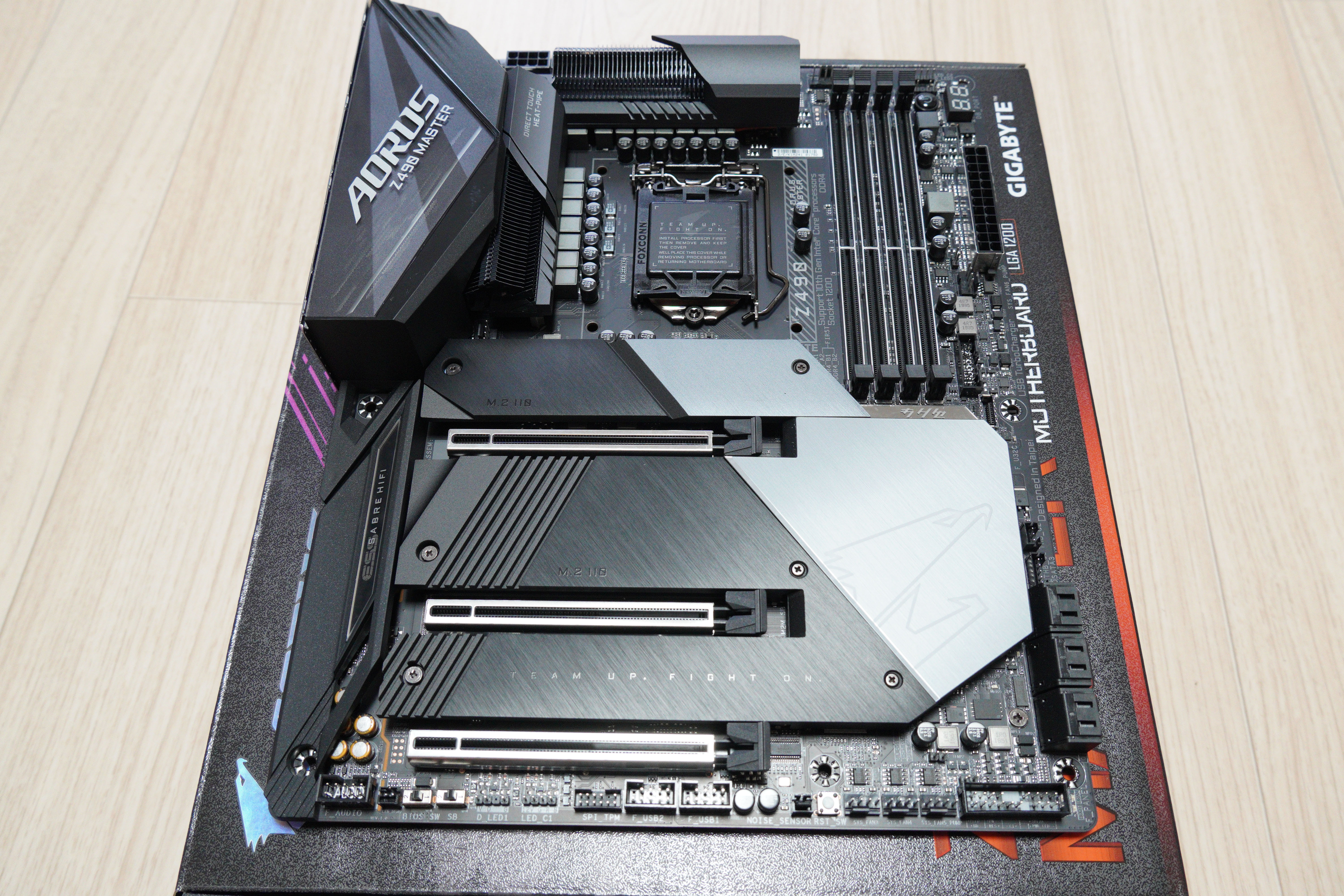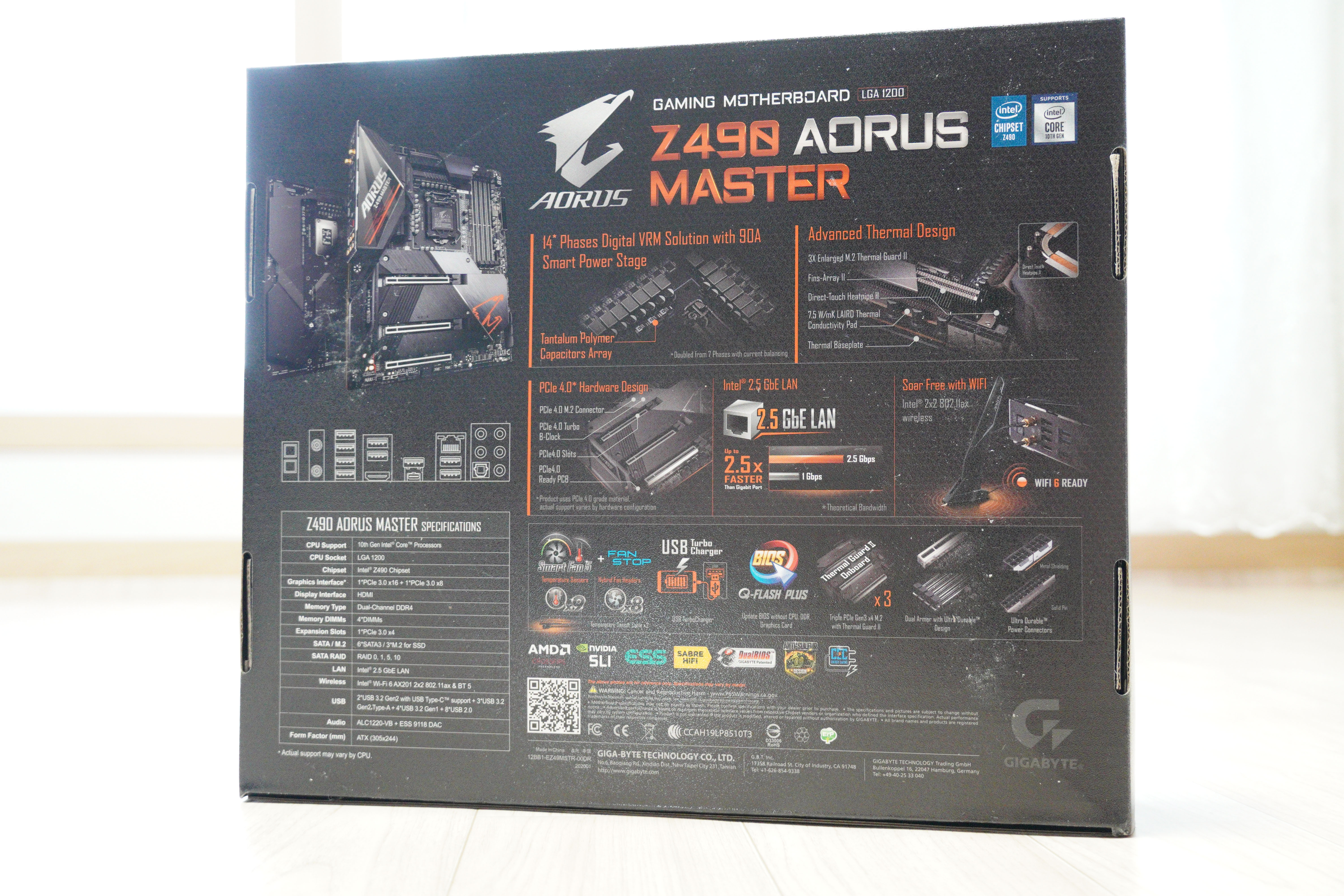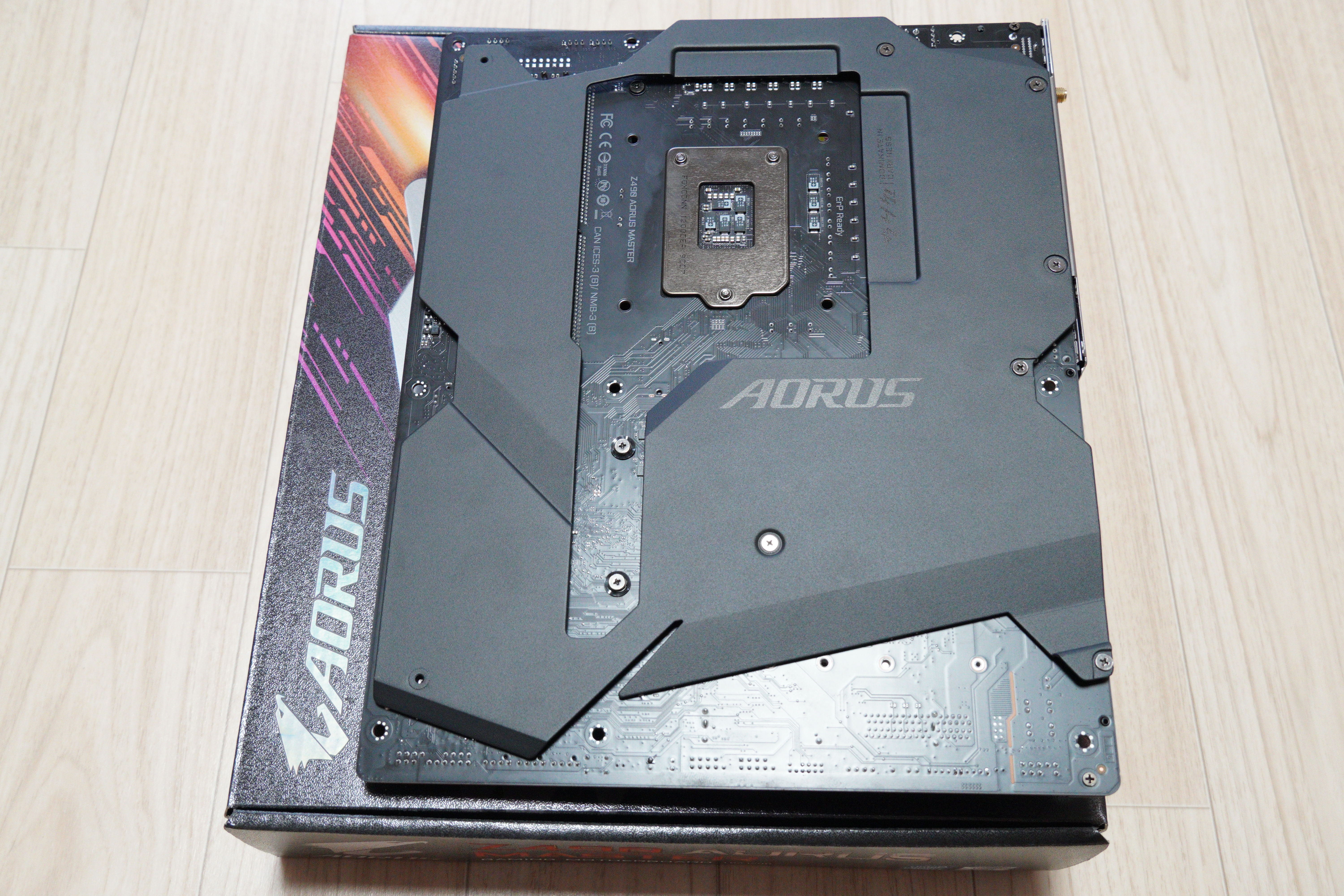 전면에 보면 Z490 칩셋이며, AORUS MASTER 제품군, 일체형 수랭 메인보드 라인업을 제외하면 최상급 라인업입니다.