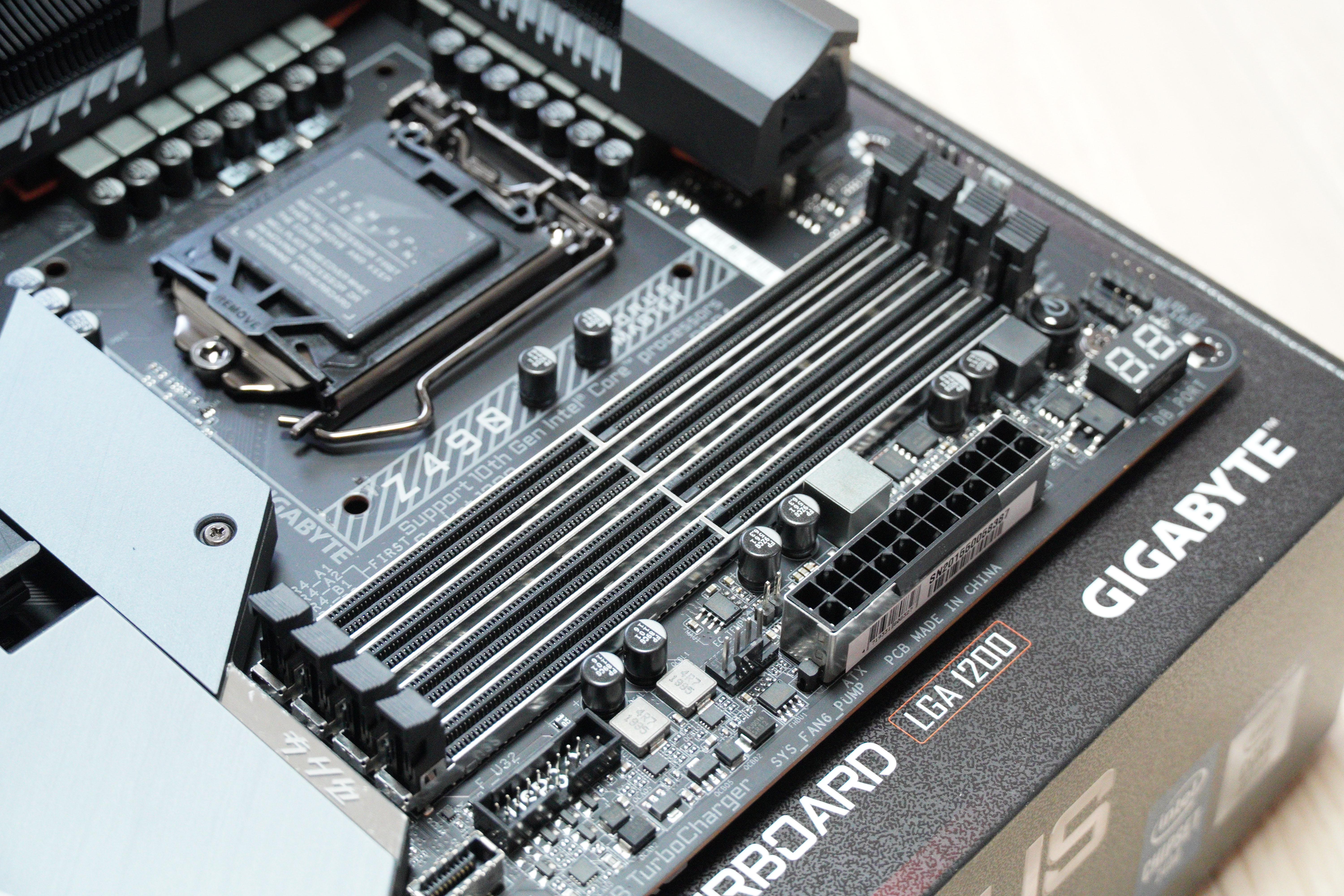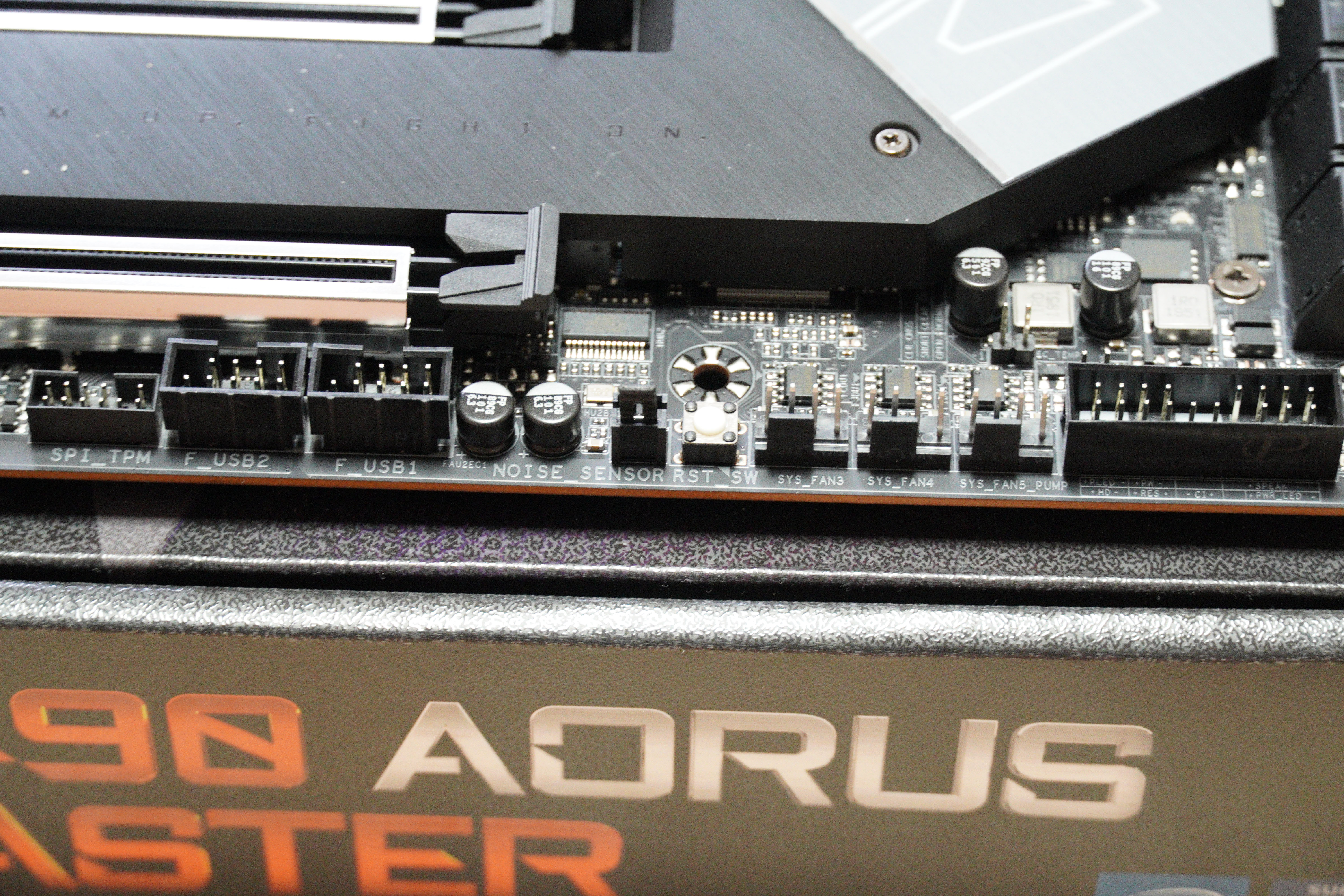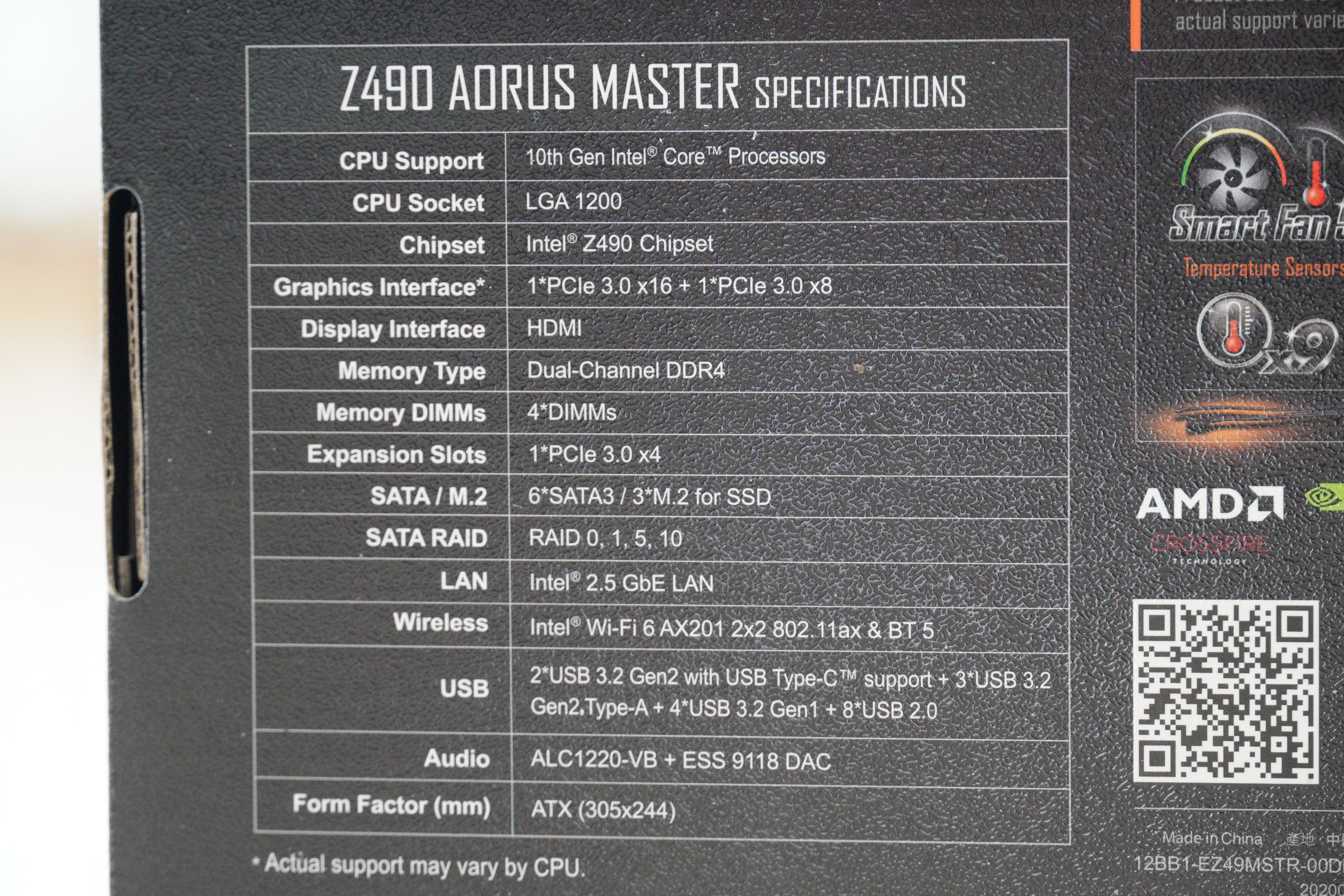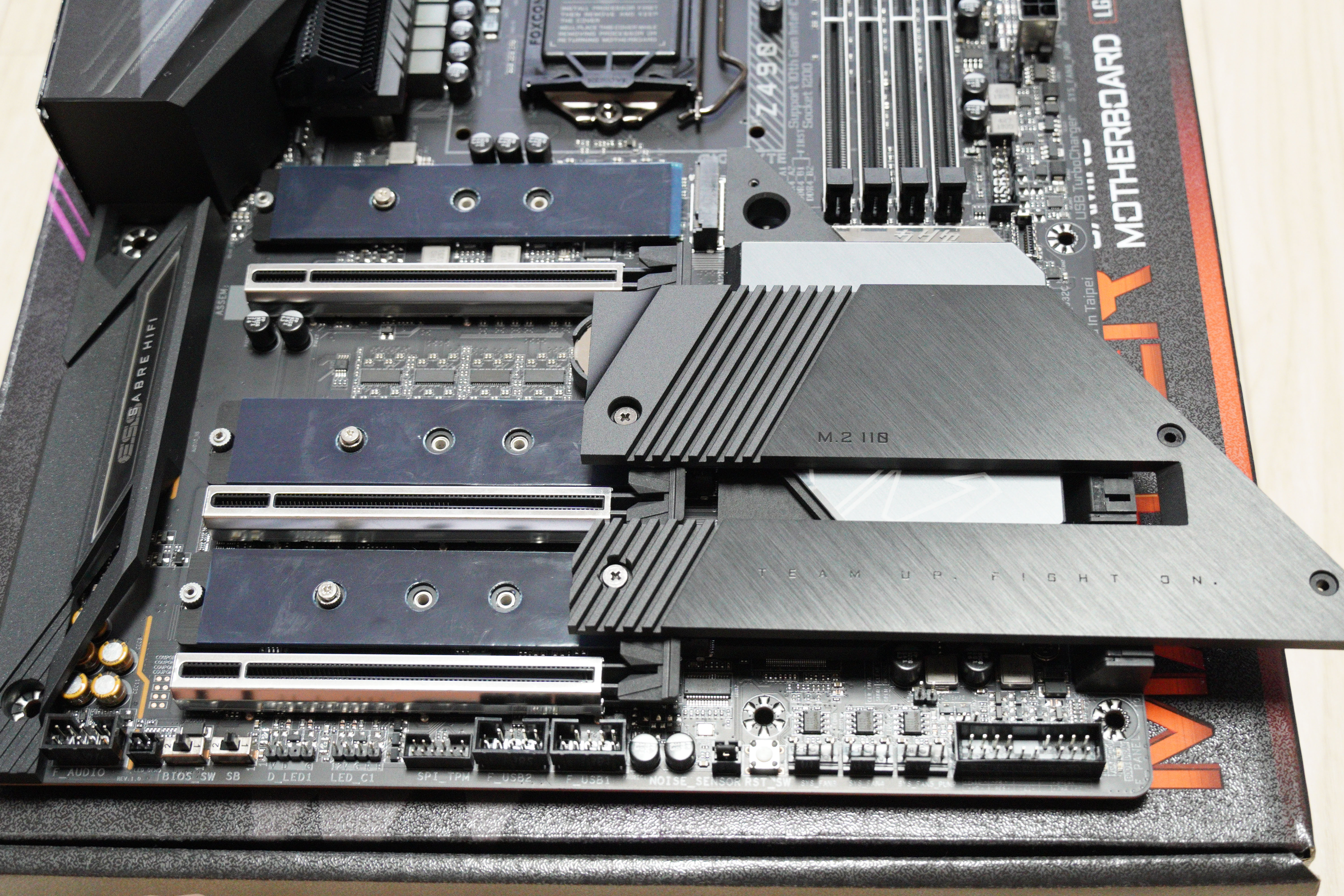 전면에 보면 Z490 칩셋이며, AORUS MASTER 제품군, 일체형 수랭 메인보드 라인업을 제외하면 최상급 라인업입니다.