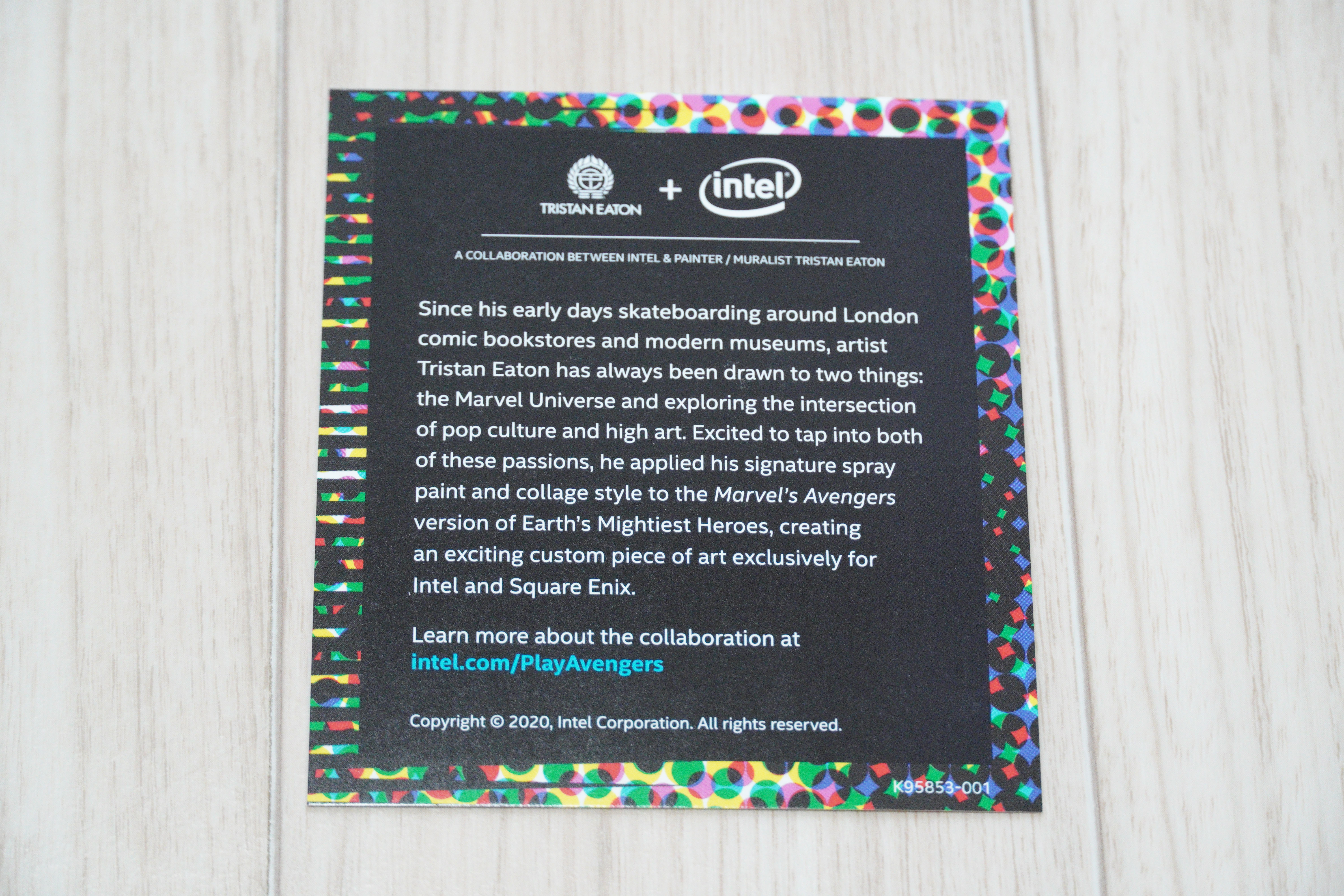 후면에는 인텔과 스퀘어 에닉스(게임 제작사)와 협업이 합쳐져 마블 어벤져스 게임이 나왔다 뭐 이런소리가 적혀있네요.