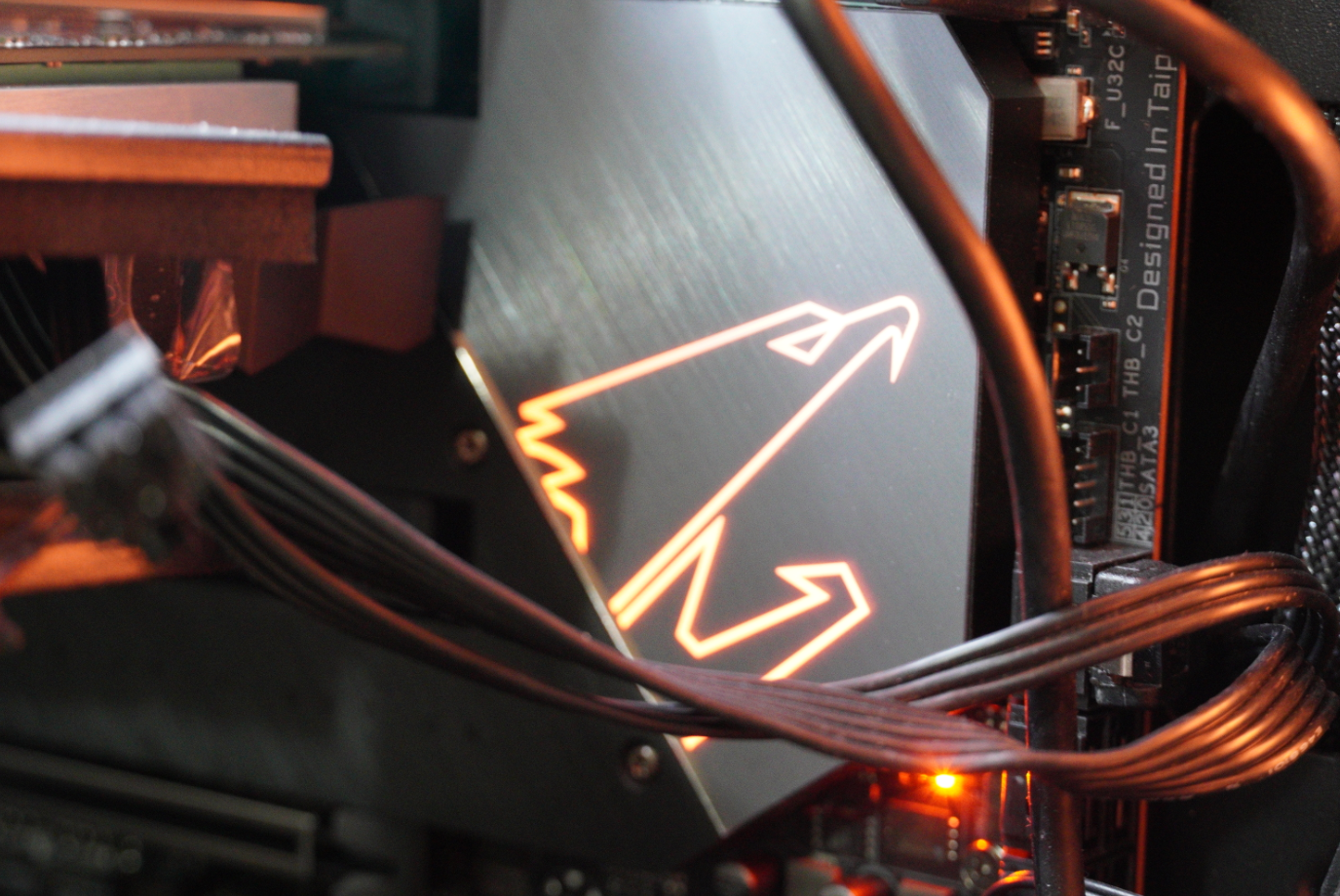 강력한 14페이즈 전원부를 식히기 위해 크고 아름다운 히트파이프가 자리잡고 있습니다.