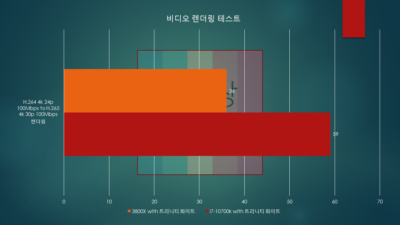 놀랍게, 3800X가 훨씬 빨리 끝났습니다. 테스트가 잘못된줄 알고, 사용한 어도비 미디어 인코더 2020 재설치도 해보고, 코덱도 재설치하고, 윈도우도 재설치 해보았는데 똑같았습니다.