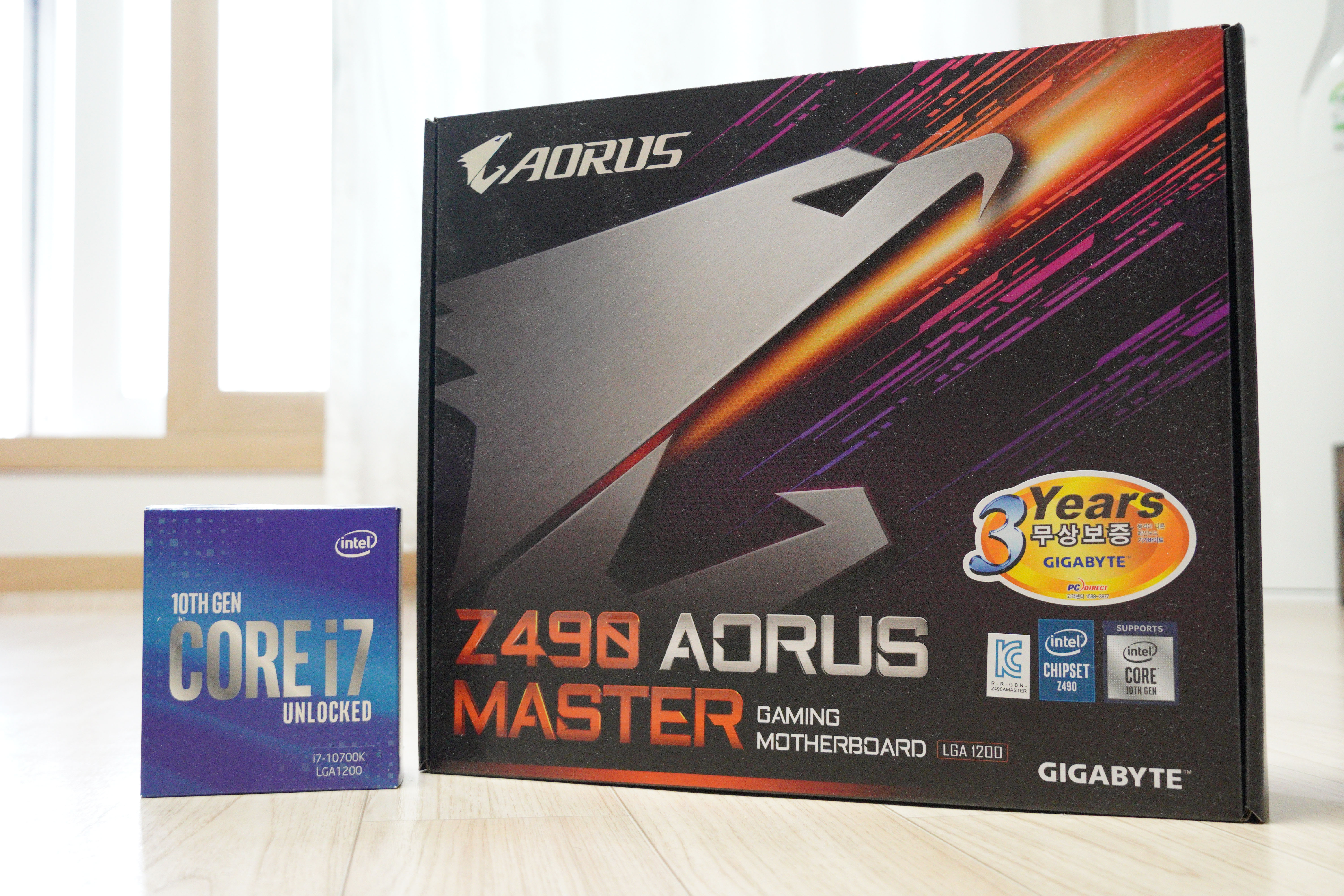 오늘 제가 가져온 제품은 무려, 인텔의 i7-10700k와 기가바이트 최고라인업 메인보드, Z490 어로스 마스터를 가져왔습니다.