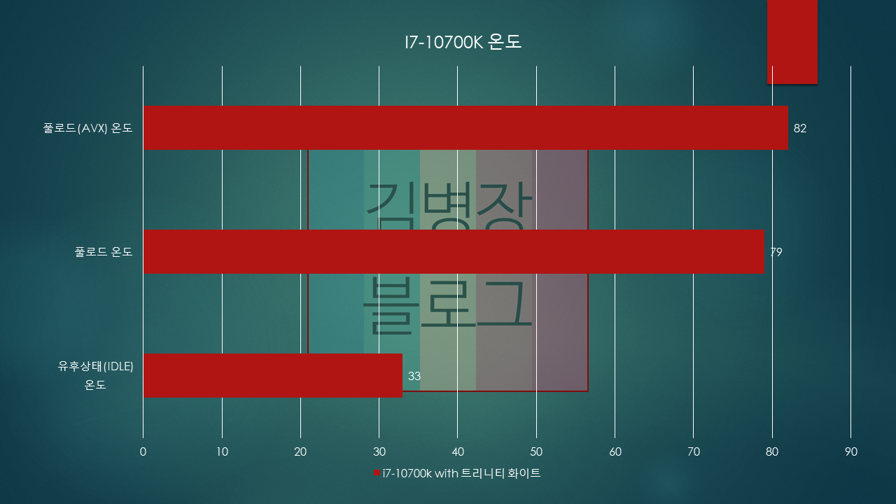 먼저 온도입니다. 일부러 쿨러는 국민 공랭쿨러인 트리니티 화이트를 이용하였습니다.