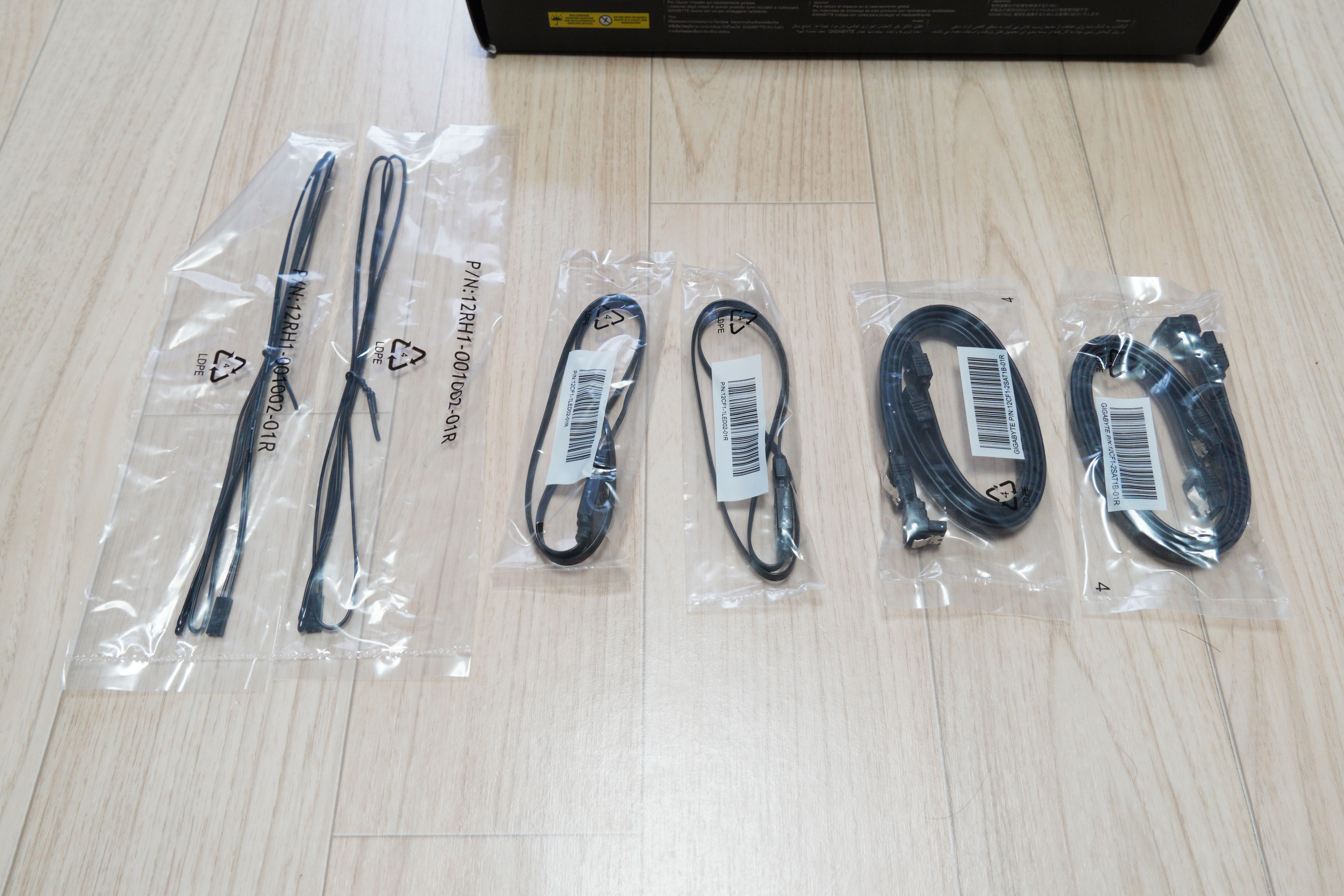 왼쪽부터 소음 센서, RGB 스트립, 서미스터 케이블과 사타케이블들이 있고