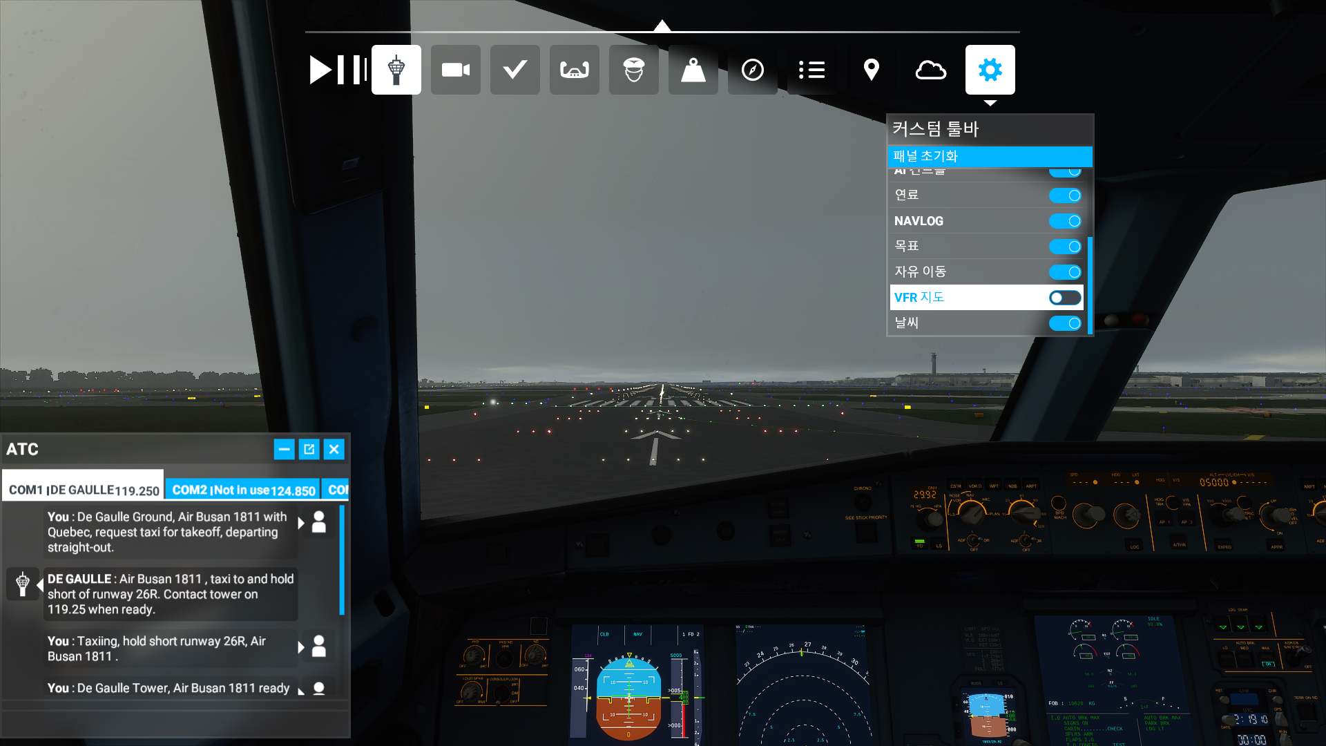 VFR Map을 끄세요. 그럼 바로 해결됩니다.