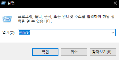윈도우키 + R을 눌러 나온 실행창에 winver 타이핑 후 엔터