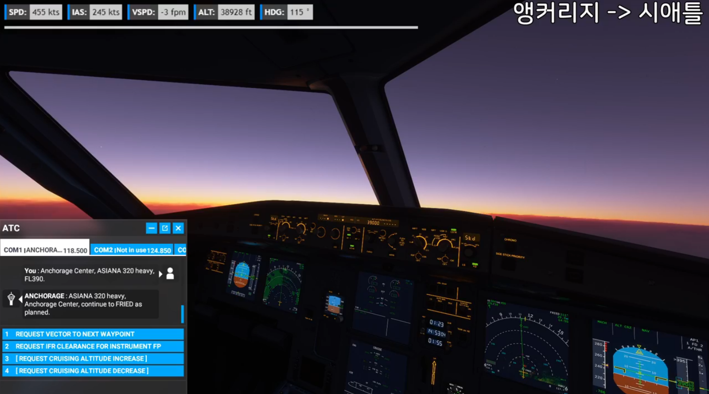 보시면 상단에 SPD(TAS), IAS, VSPD, ALT 및 HDG 정보까지 표기됩니다. CSS 편집을 통해 디자인을 변경할 수 있습니다.