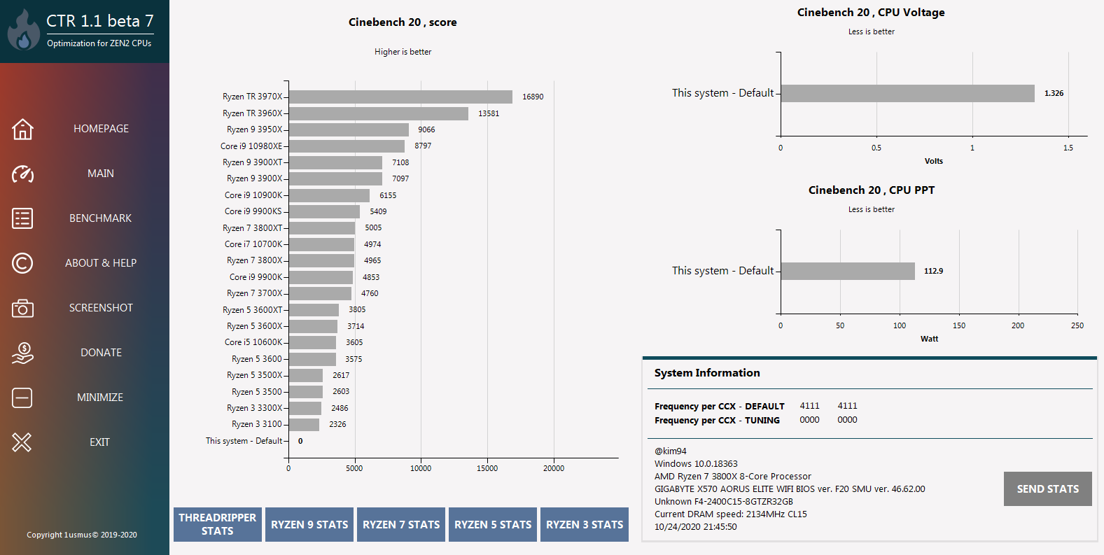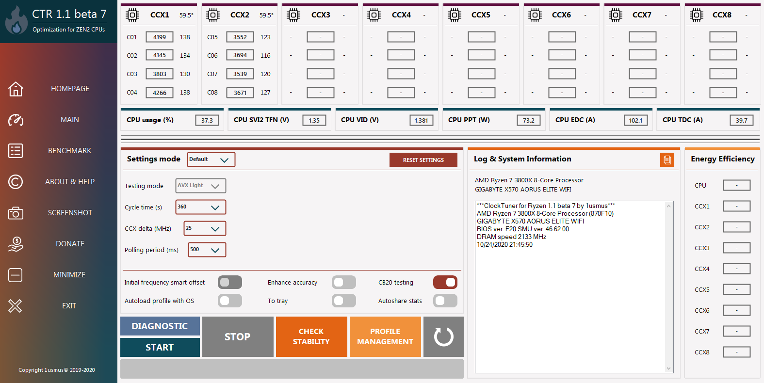 저는 제 기본 시스템인 Ryzen 7 3800X와 GIGABYTE X570 AORUS ELITE WIFI 메인보드, Thermaltake 3열 수랭을 이용하였습니다.
