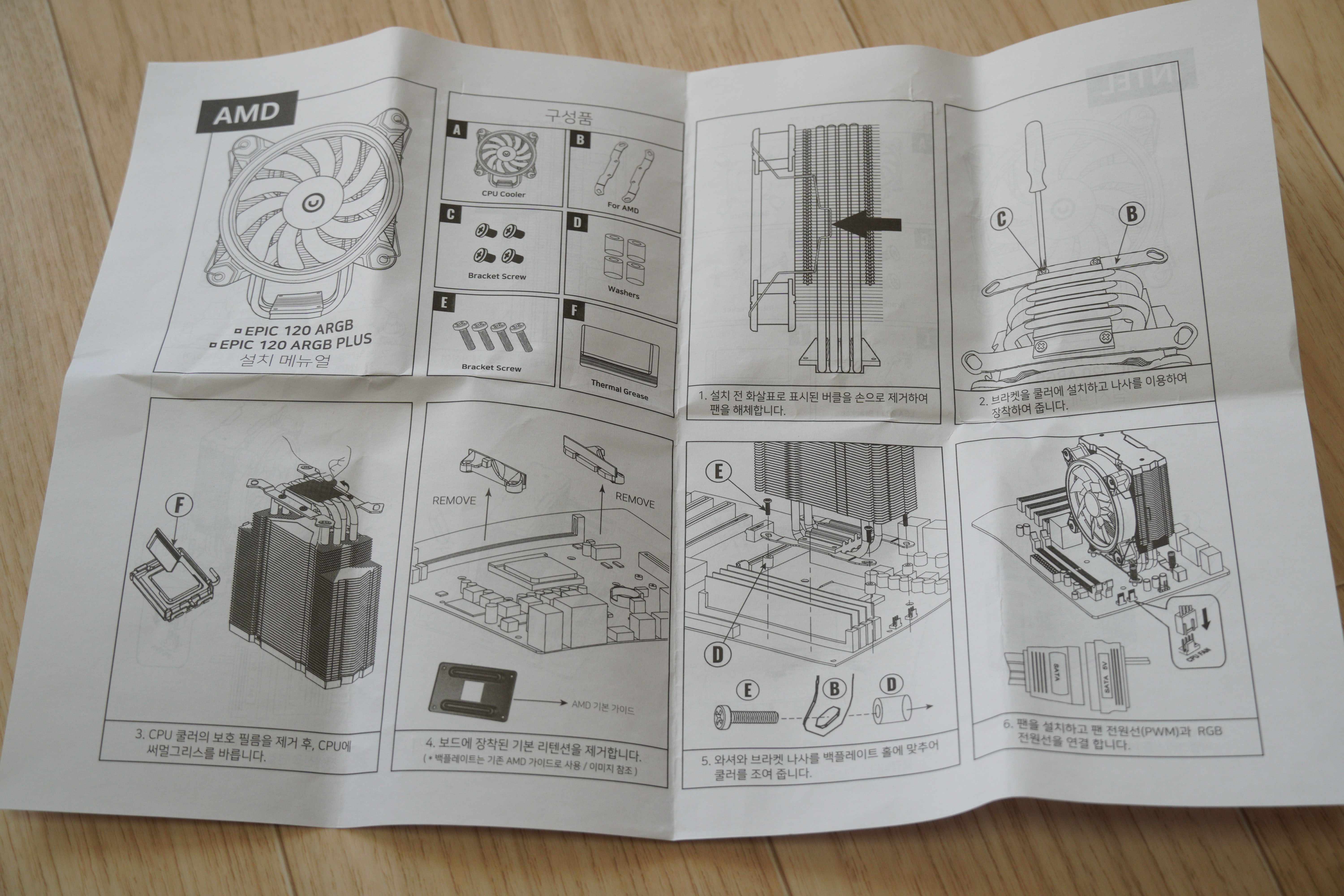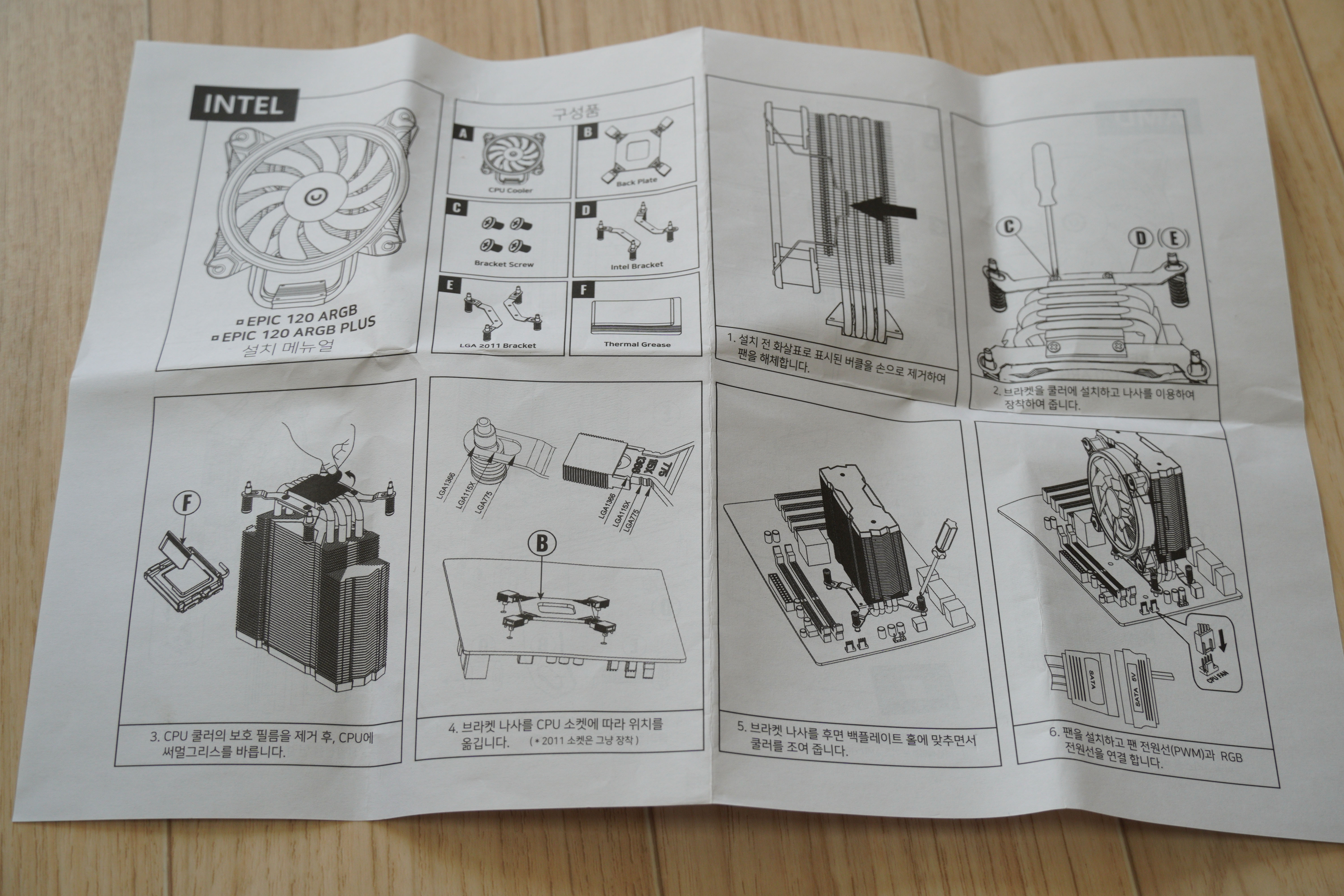 설명서를 두개 다 살펴보았습니다. AMD와 인텔 모두 조립 방법은 대부분 동일합니다. 인텔과 AMD는 브라켓만 다를 뿐, 조립 방법은 동일합니다.