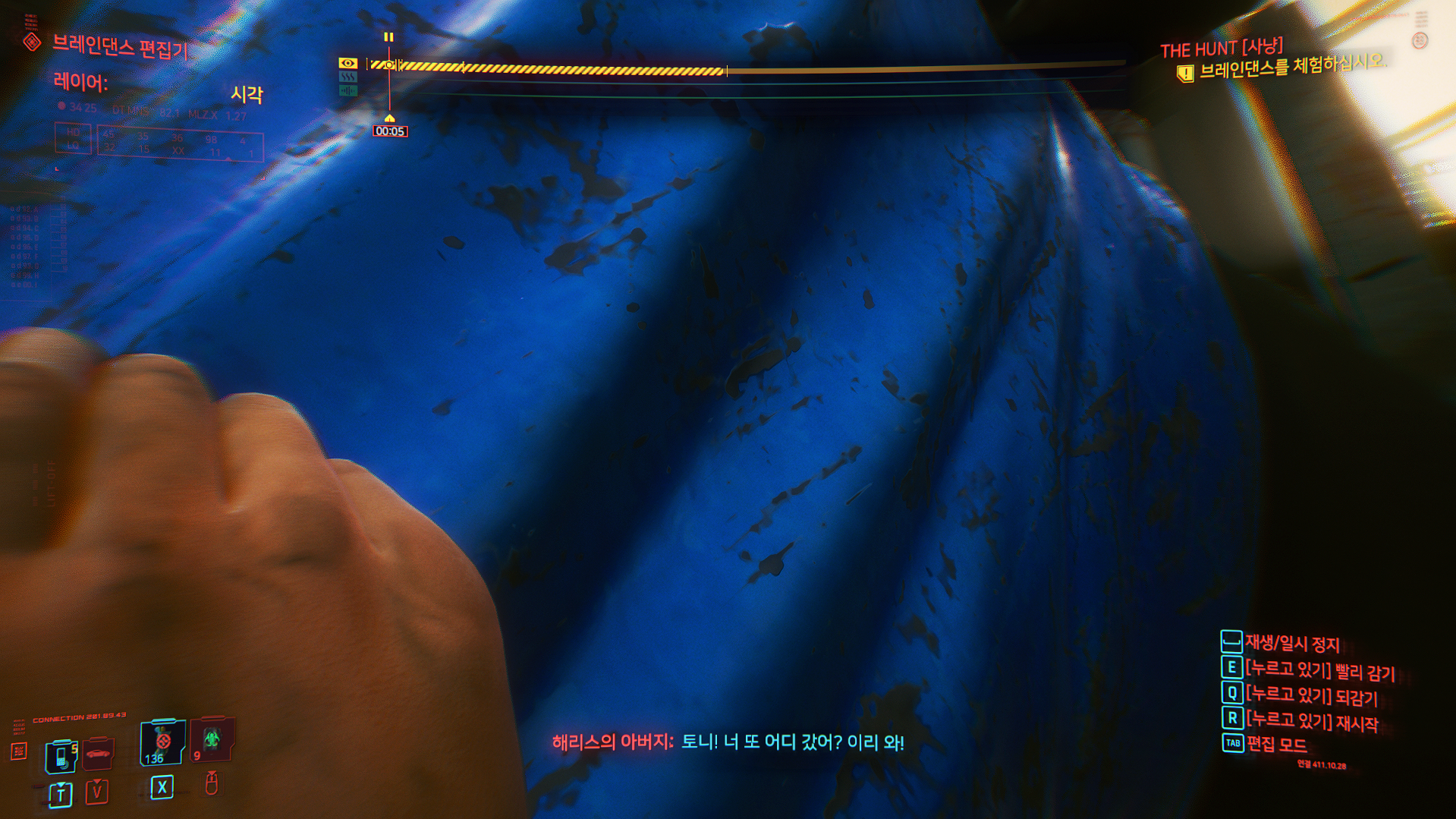 만약 스캔 항목(트로피, 벽에 붙은 TV)을 모두 스캔했다면, X를 길게 누르세요. 다음 브레인댄스로 넘어갈 수 있습니다.