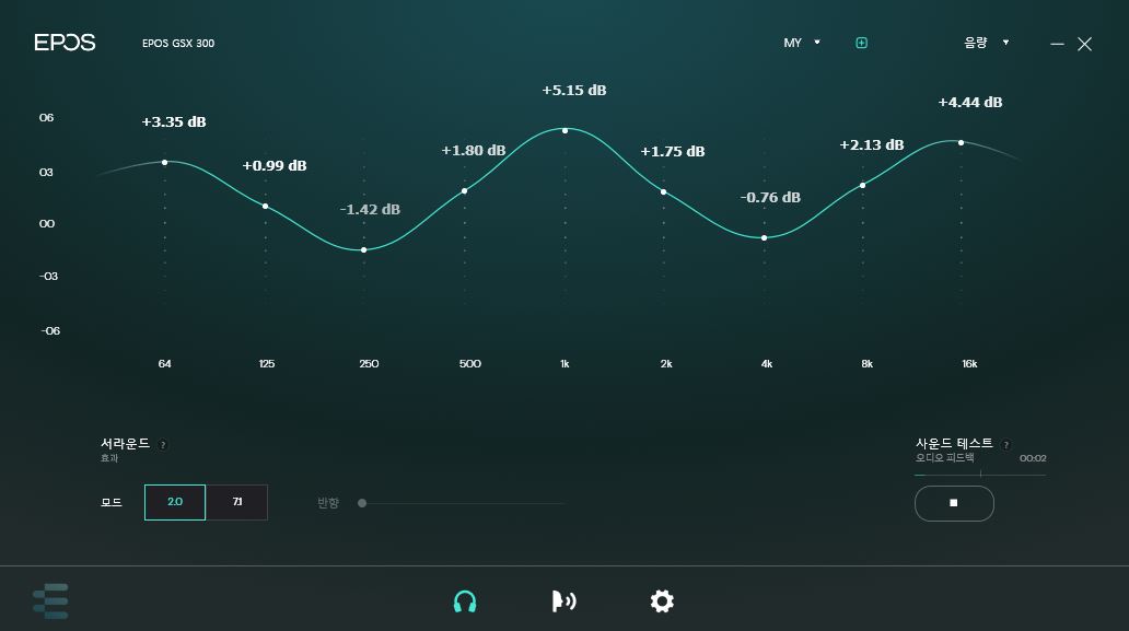 헤드셋 탭에 가면, EQ와 7.1채널의 반향을 조정할 수 있습니다.