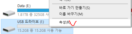 아니라면 USB 드라이브를 우클릭 후, 포멧을 누릅니다.