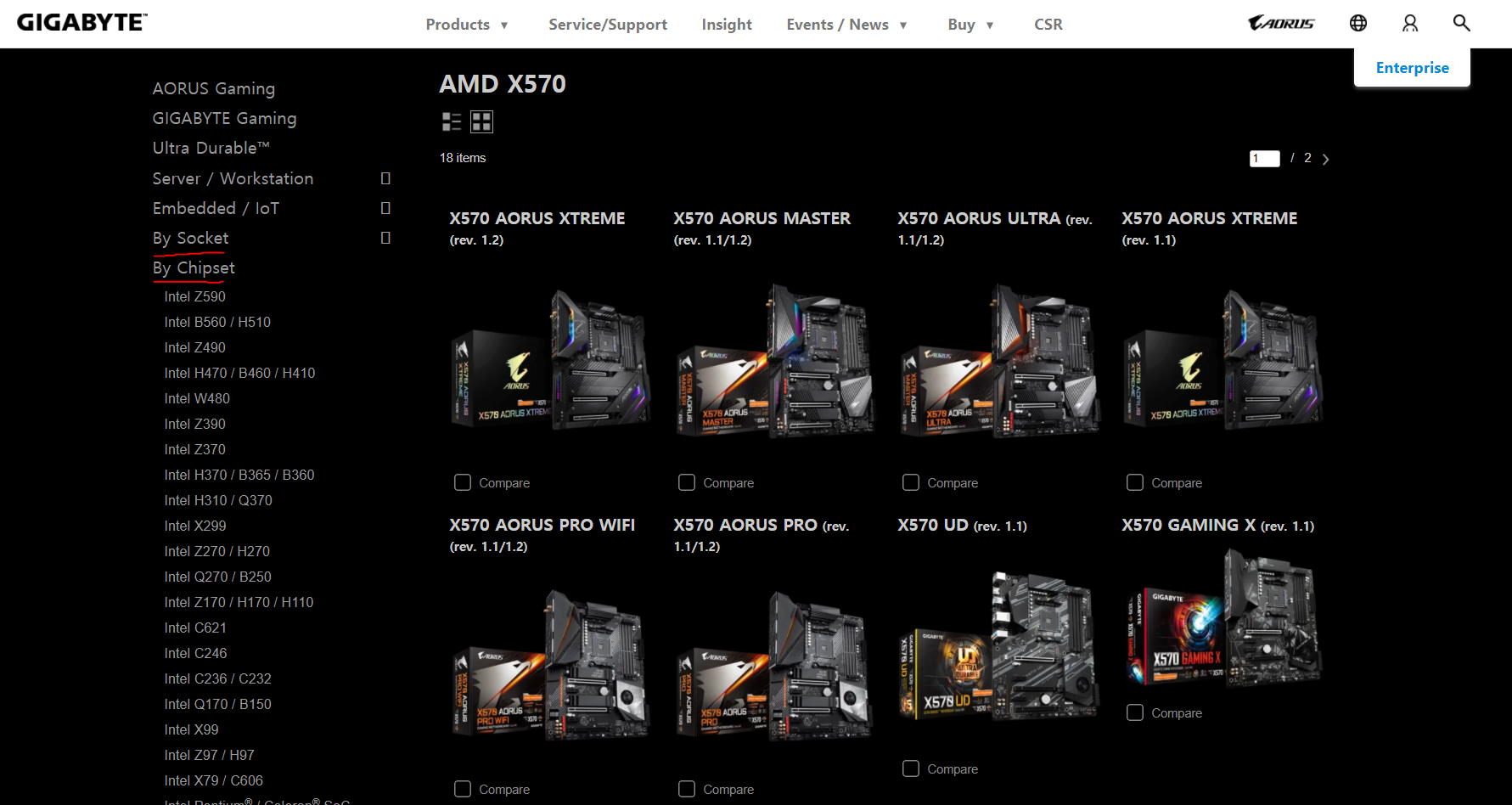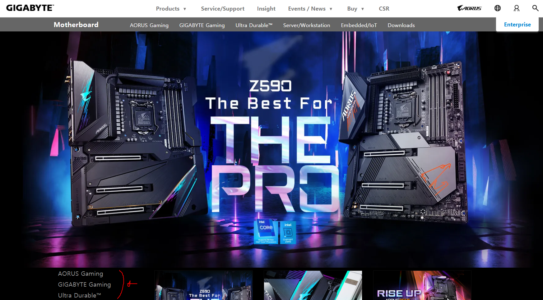 먼저 홈페이지에 들어가면, 상단에 MotherBoard에 종류별로 나와있기도 하고, 왼쪽 아래 붉은색으로 체크한것처럼 종류가 나눠져 있기도 합니다.